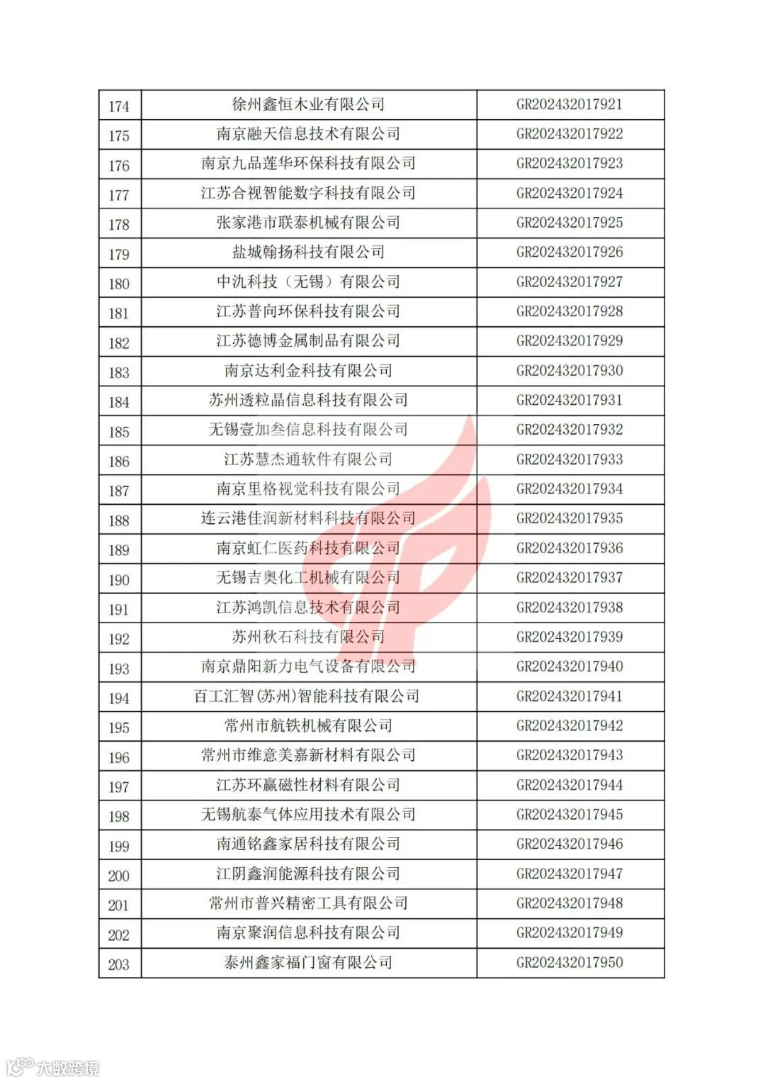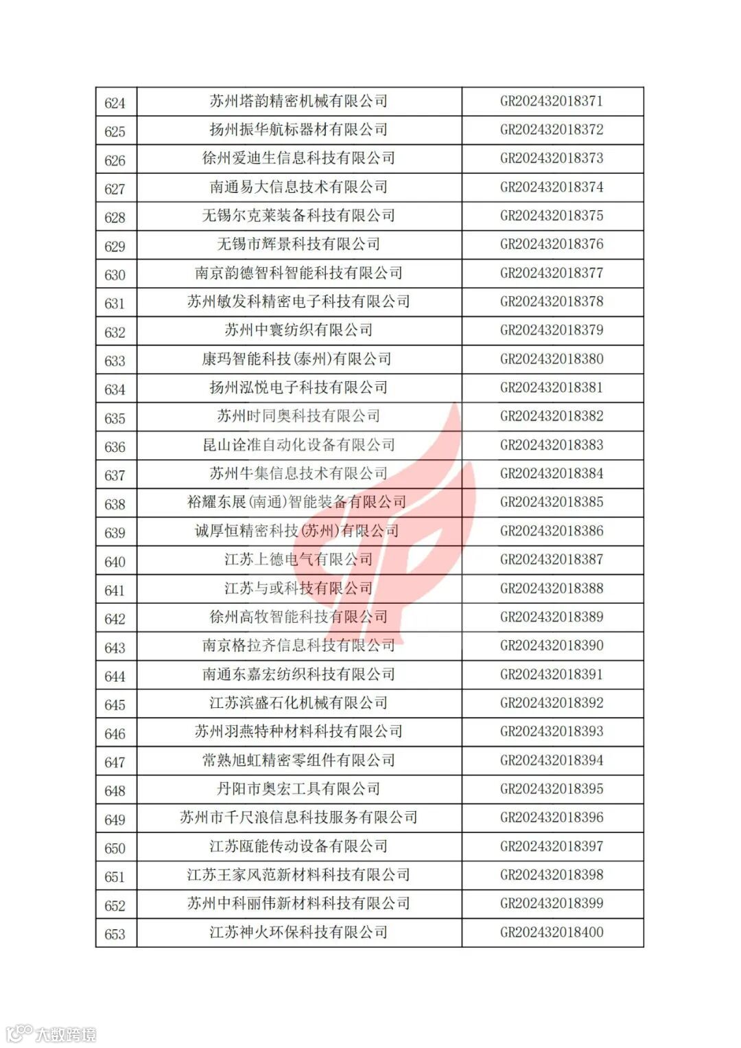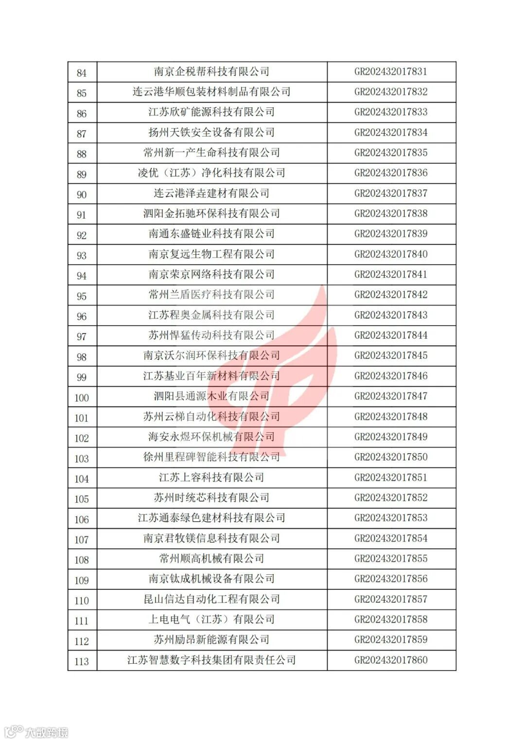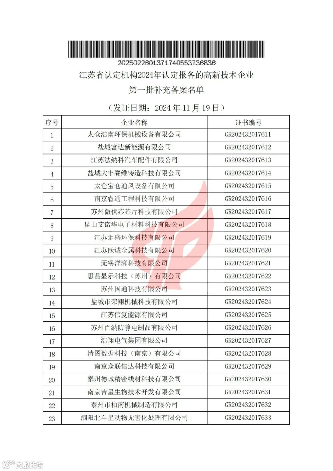 〖公示〗对江苏省认定机构2024年认定报备的高新技术企业进行第一批补充备案的公告