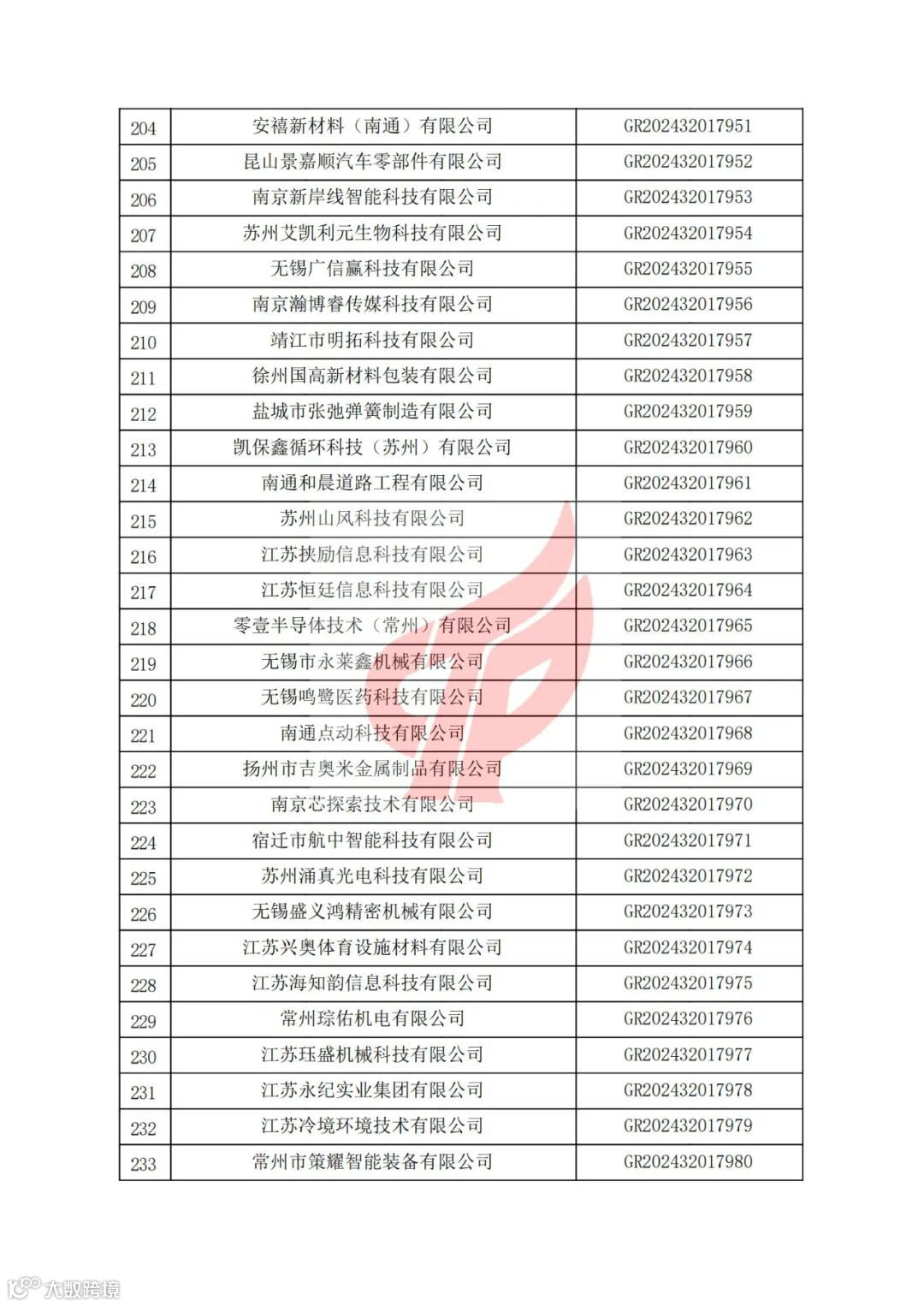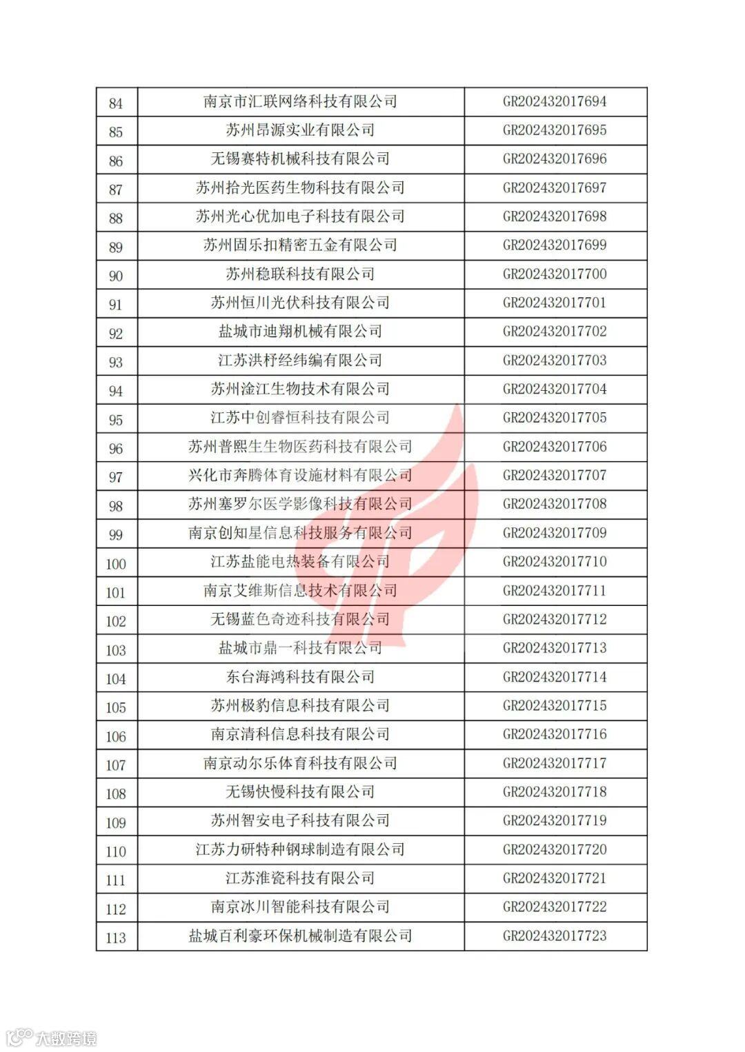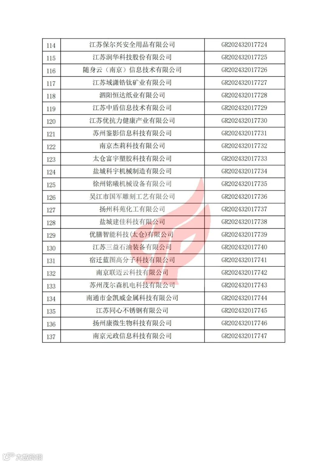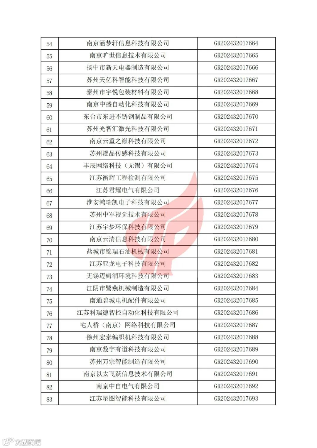 〖公示〗对江苏省认定机构2024年认定报备的高新技术企业进行第一批补充备案的公告