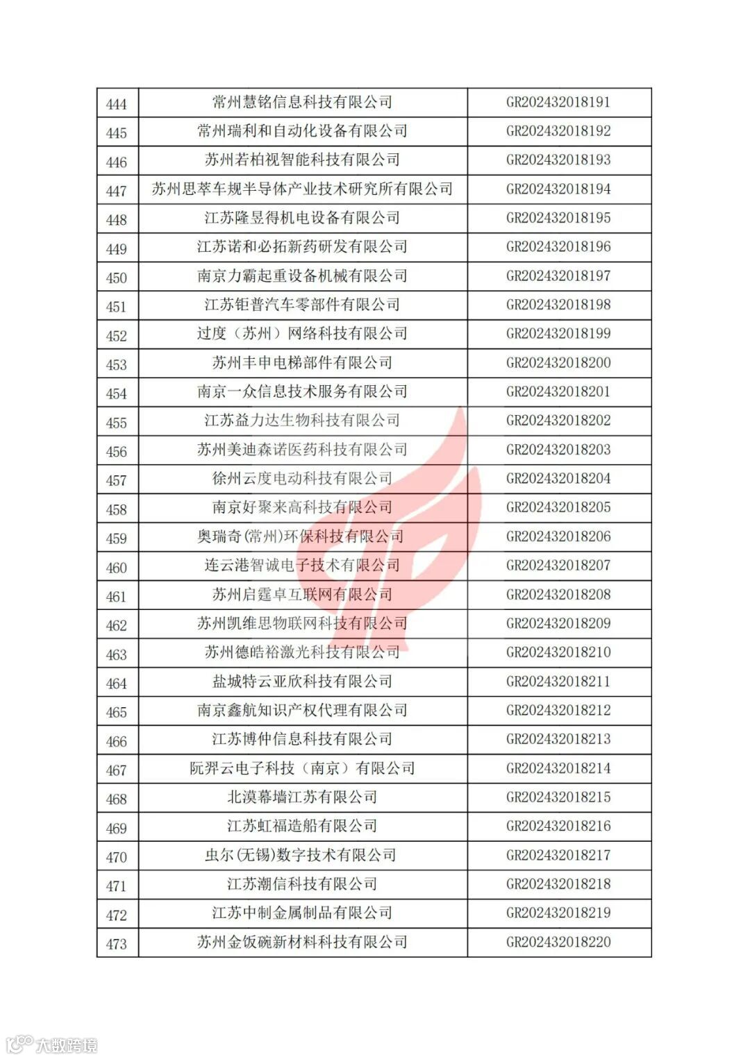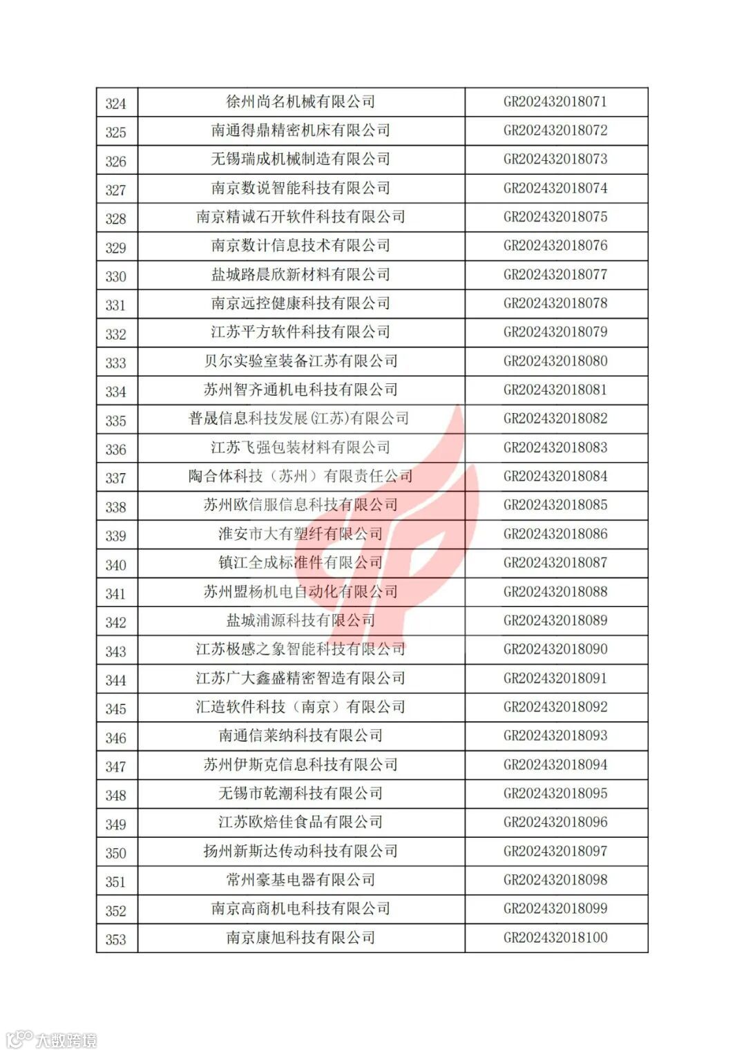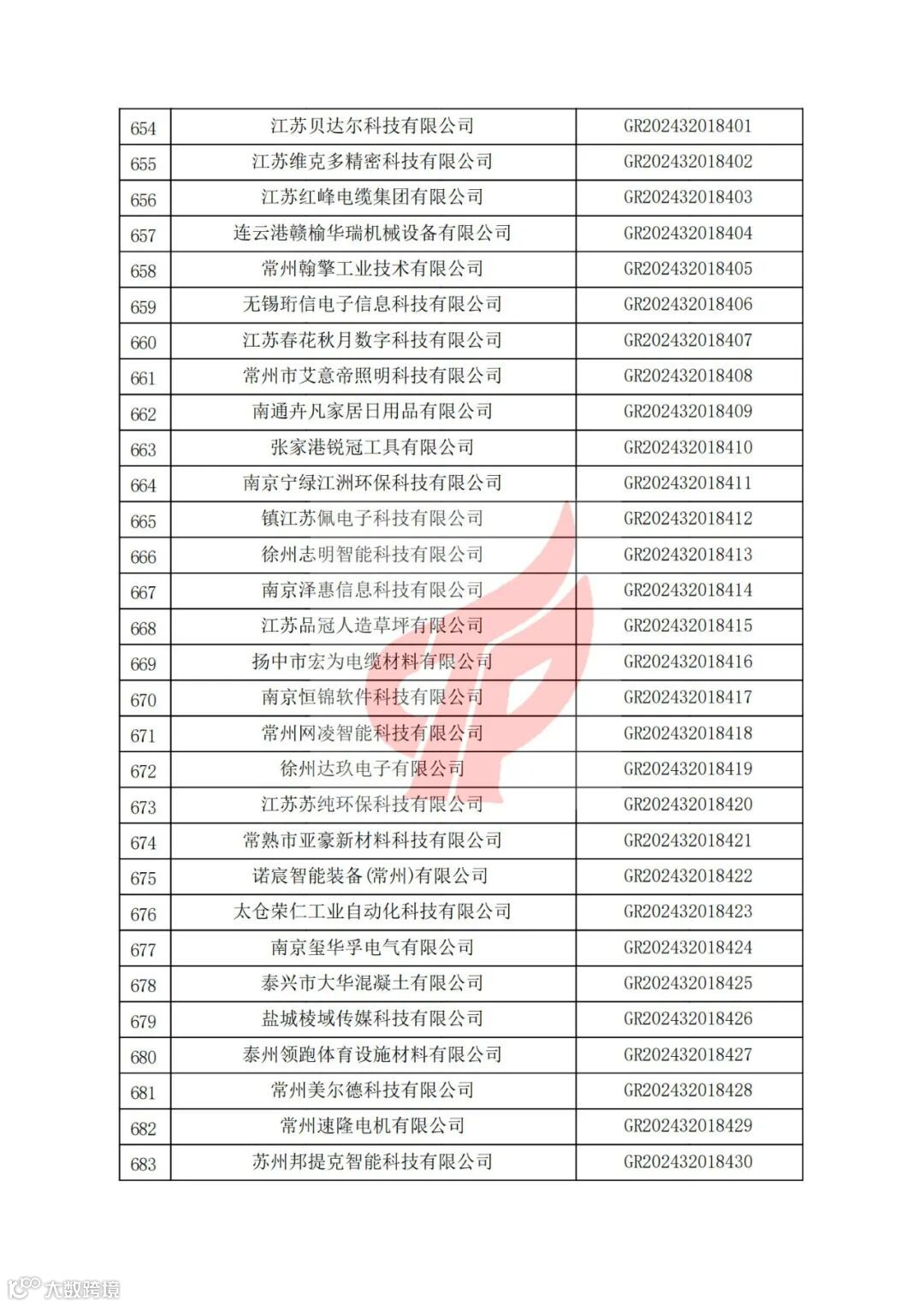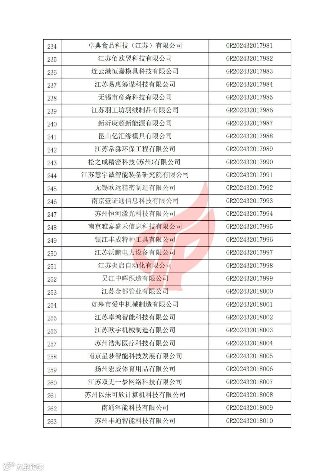〖公示〗对江苏省认定机构2024年认定报备的高新技术企业进行第一批补充备案的公告