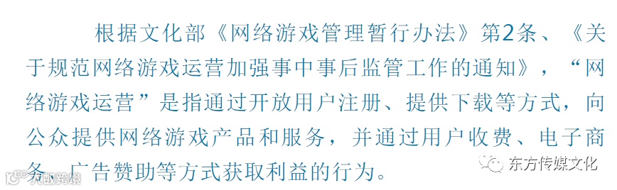 同时,通过开放用户注册、开放收费系统等方式开展的网络游戏技术测试,就是所谓的“公测”,也属于网络游戏运营。网络游戏运营企业为其他运营企业的网络游戏产品提供用户系统、收费系统、程序下载、宣传推广等服务,并参与收益分成的,则属于“联合运营”。