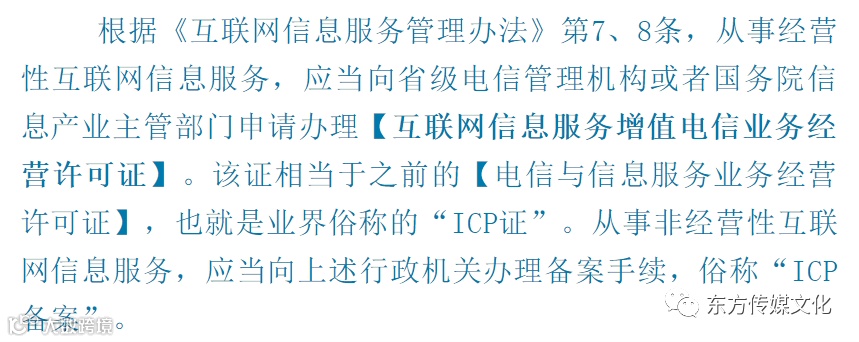 “ICP”是“Internet Content Provider”的缩写,意为“互联网内容提供者”。“ICP证”是增值电信业务经营许可证中的一种,针对的业务种类为“互联网信息服务”。网络游戏运营商在向普通玩家提供免费服务的同时,也通过人民币玩家氪金、广告植入等方式获取收益,因此,网络游戏运营一般属于经营性互联网信息服务,运营商需要办理“ICP证”。