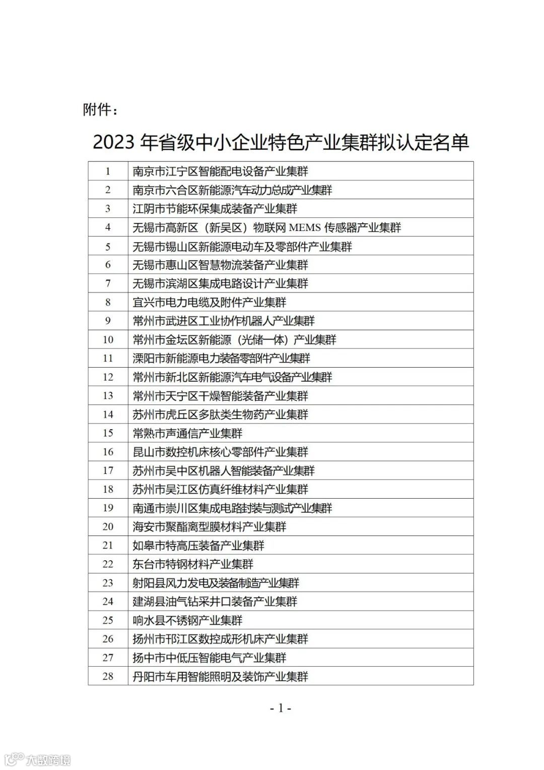 发展,根据《江苏省促进中小企业特色产业集群发展管理办法》,前期我厅组织开展了2023年省级中小企业特色产业集群培育认定工作。经各地审核推荐、专家评审、专题会审、厅务会审议等程序,现将我省2023年拟认定的省级中小企业特色产业集群名单予以公示(见附件)。
