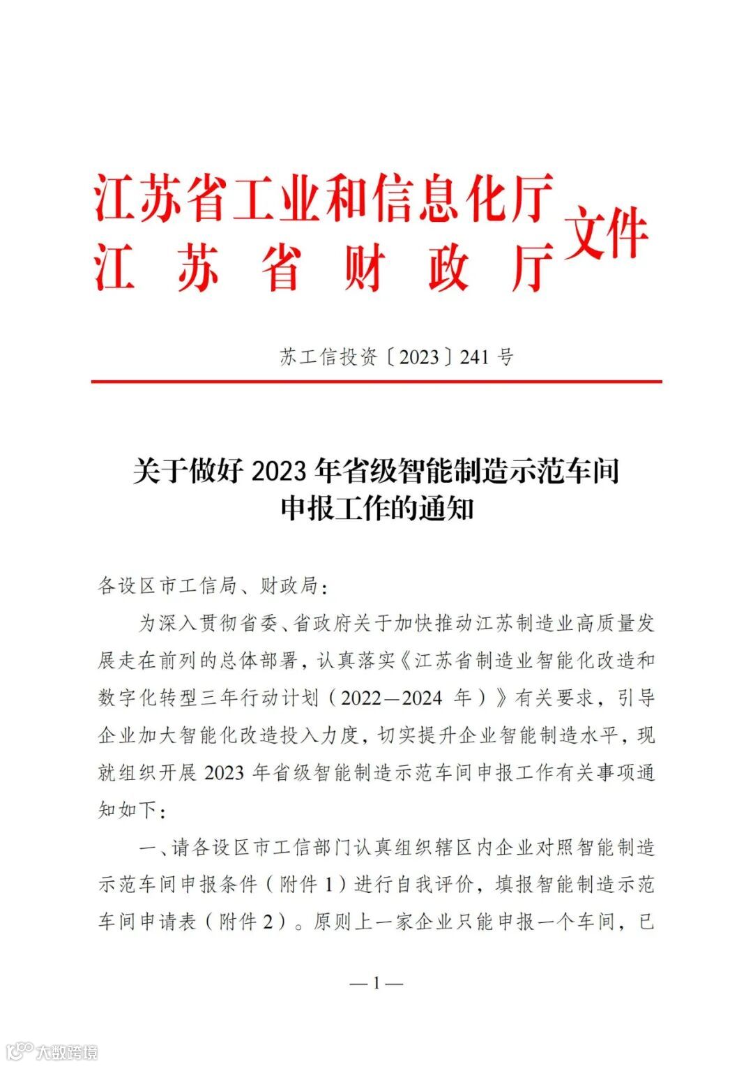 〖通知〗关于做好2023年省级智能制造示范车间申报工作的通知