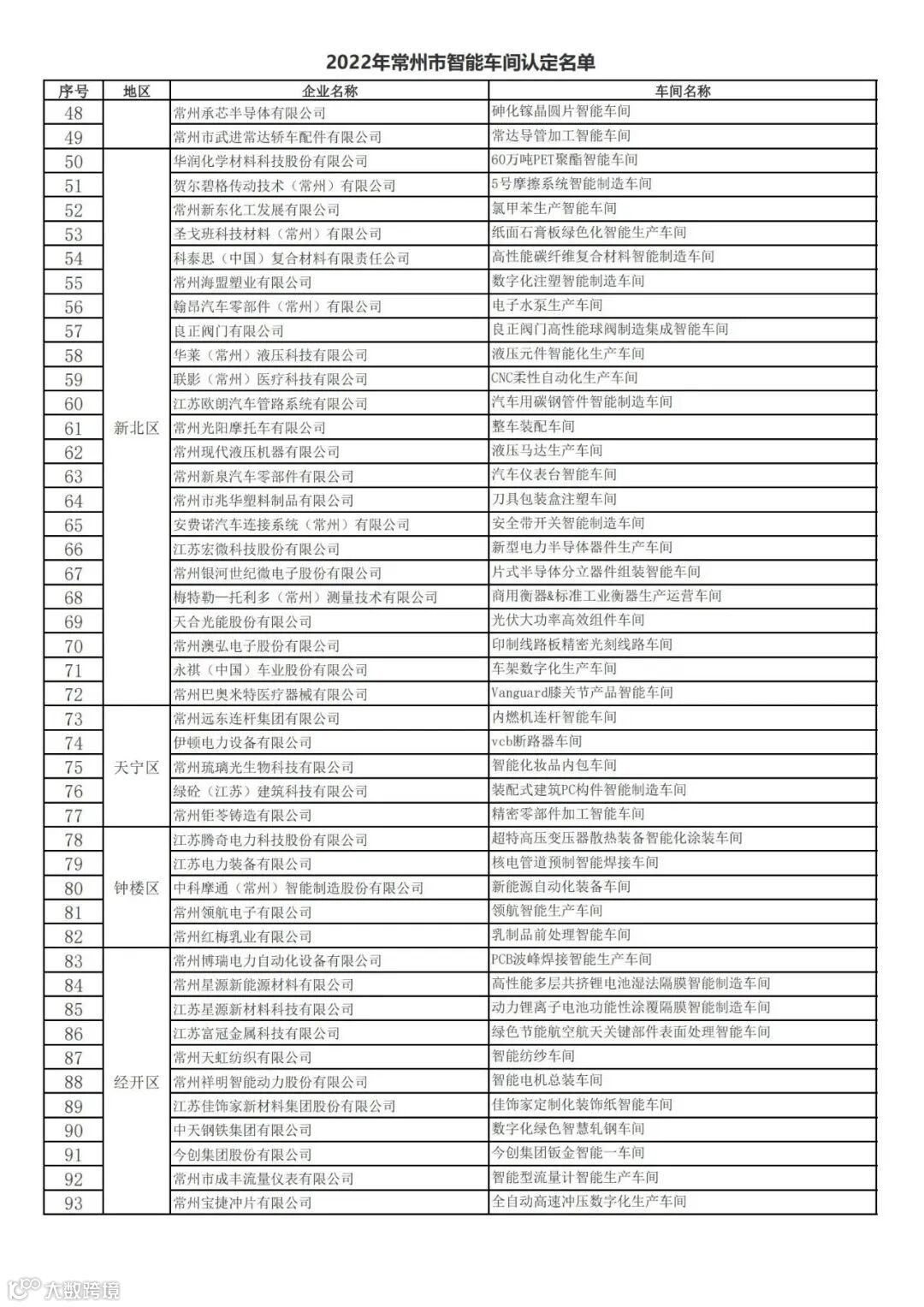〖公示〗关于2022年常州市智能车间认定名单的公示