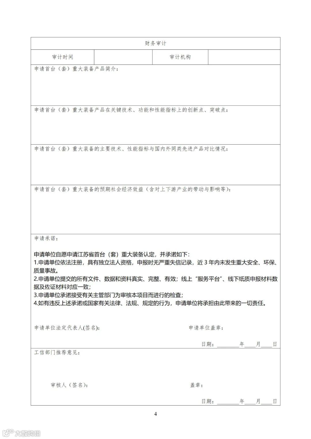 请各地组织指导企业通过“江苏政务服务网”省工业和信息化厅旗舰店中的江苏省首台(套)重大装备认定事项服务平台填报,并上传申报材料及佐证材料(服务平台网址:
