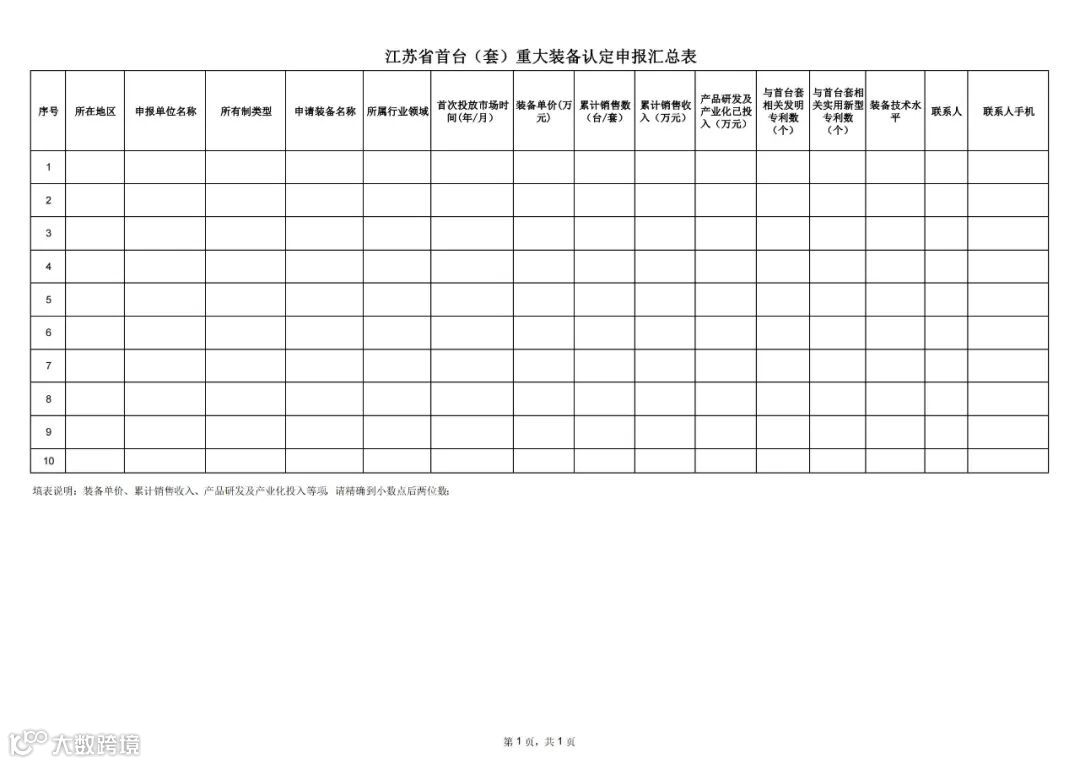 、《江苏省首台(套)重大装备认定申报汇总表》和被推荐单位的申报材料等纸质件(一式一份)汇总报送至省工信厅,同时报送申报材料电子版(PDF格式)。