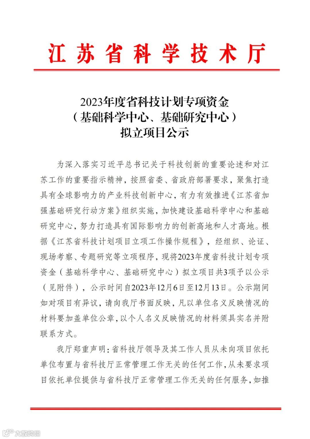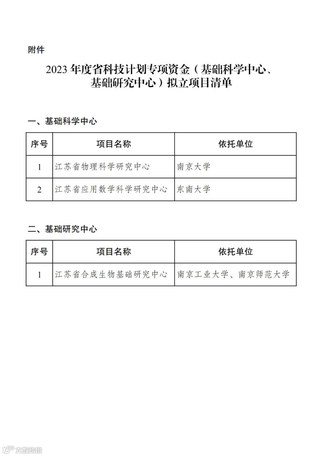 〖公示〗2023年度省科技计划专项资金(基础科学中心、基础研究中心)拟立项目公示