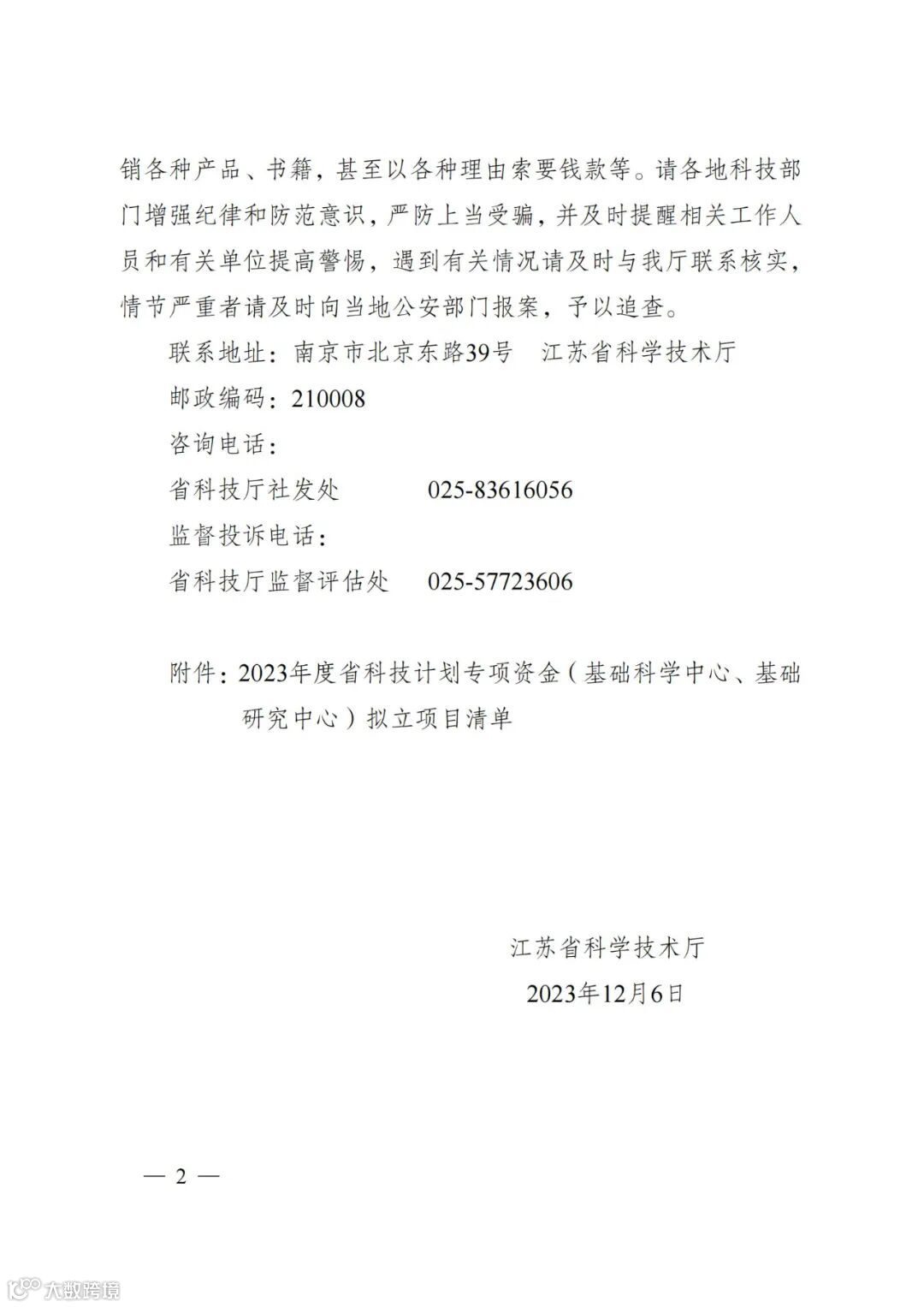 信息来源:江苏省科学技术厅