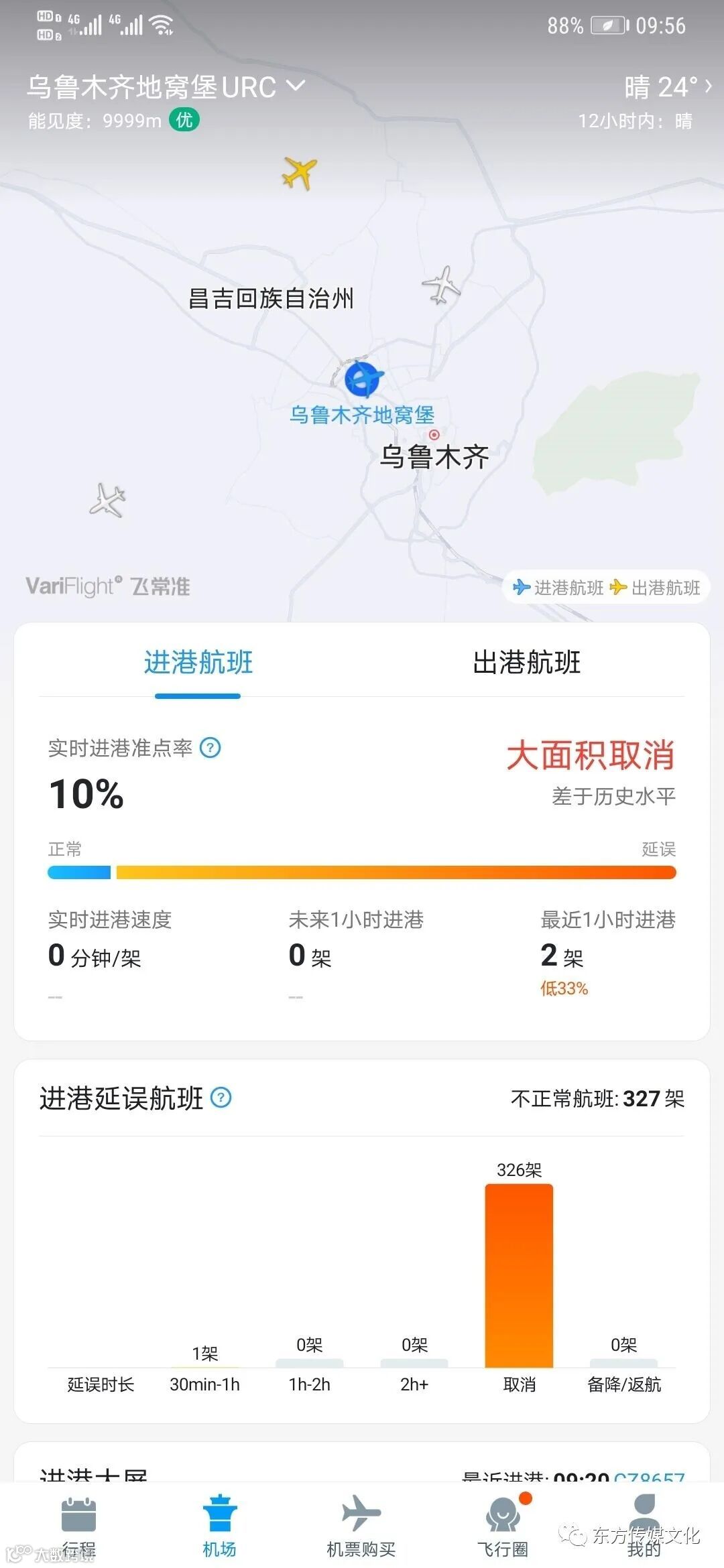 民航资源网2020年7月17日消息:受疫情防控情况影响,17日乌鲁木齐机场航班大量取消,飞常准数据显示,截至9:55进港航班取消326架次,出港航班取消302架次。