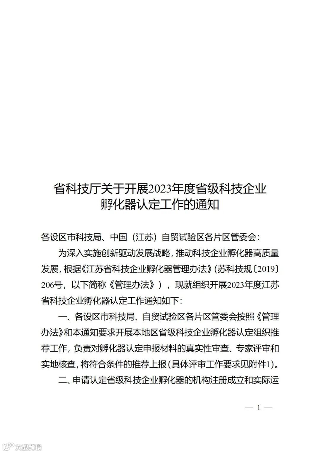 省科技厅关于开展2023年度省级科技企业孵化器认定工作的通知
