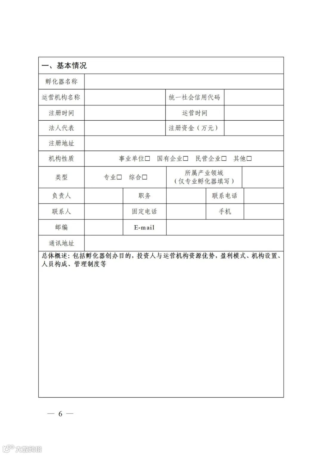 市级科技企业孵化器认定申报书