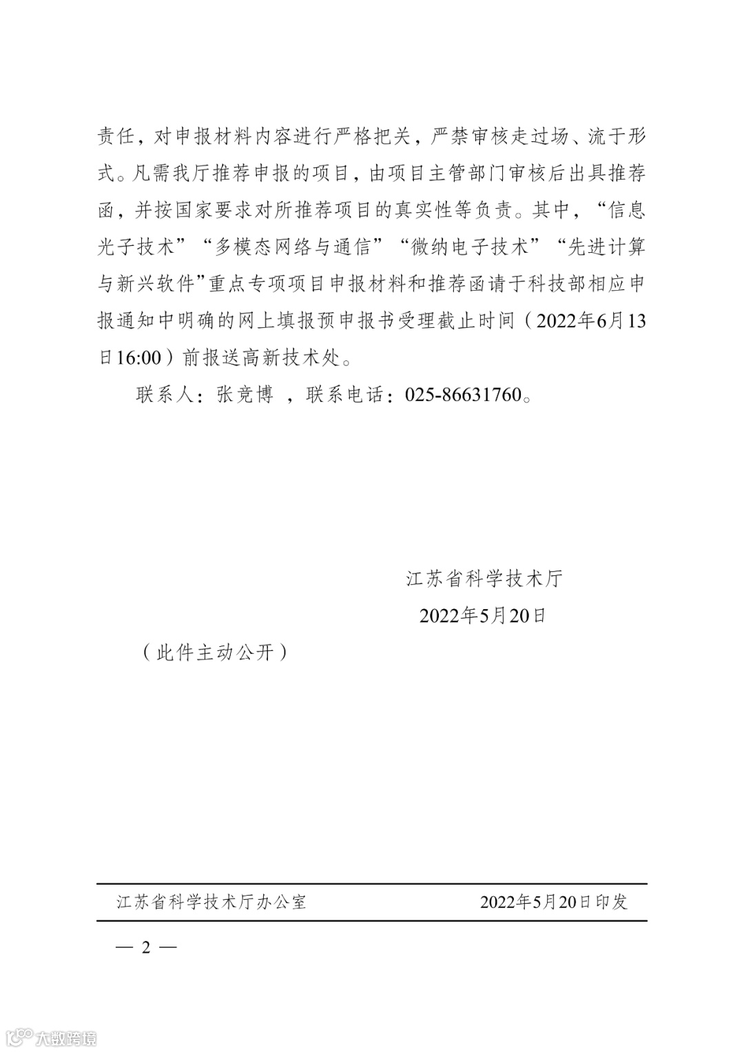 现将省科技厅《关于转发国家重点研发计划“信息光子技术”等重点专项2022年度项目申报指南的通知》转发给你们,请严格根据省科技厅通知要求组织项目申报工作,