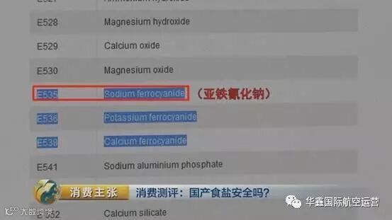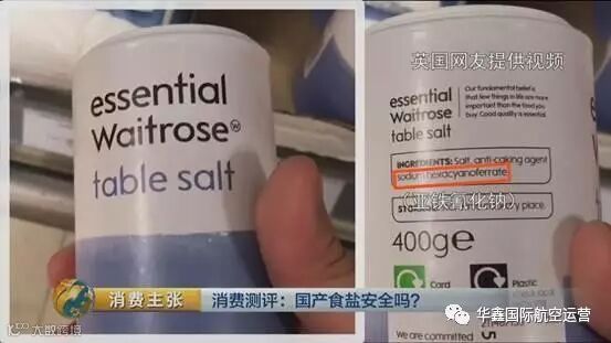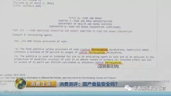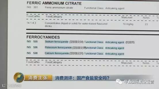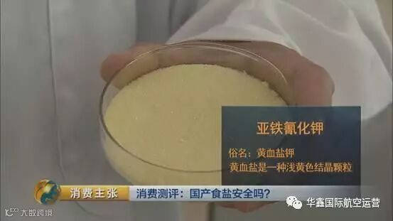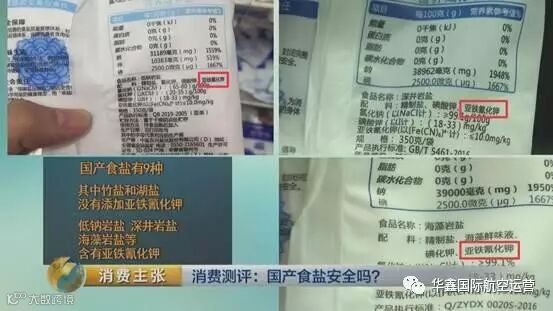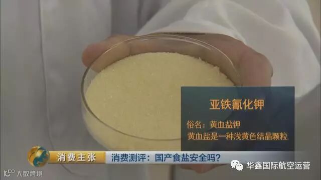 中华预防医学会健康传播分会常务委员钟凯:在国际标准当中,亚铁氰化钠、亚铁氰化钾、亚铁氰化钙都是可以用于食盐抗结,那么它还没有做限量规定,在美国标准当中,亚铁氰化钠是可以用于食盐抗结。