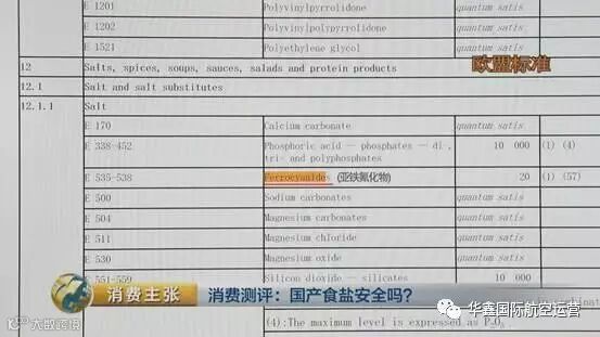 中华预防医学会健康传播分会常务委员钟凯:那么在欧盟的标准和日本的标准当中,都是亚铁氰化钠、亚铁氰化钾、亚铁氰化钙都可以用于食盐抗结。