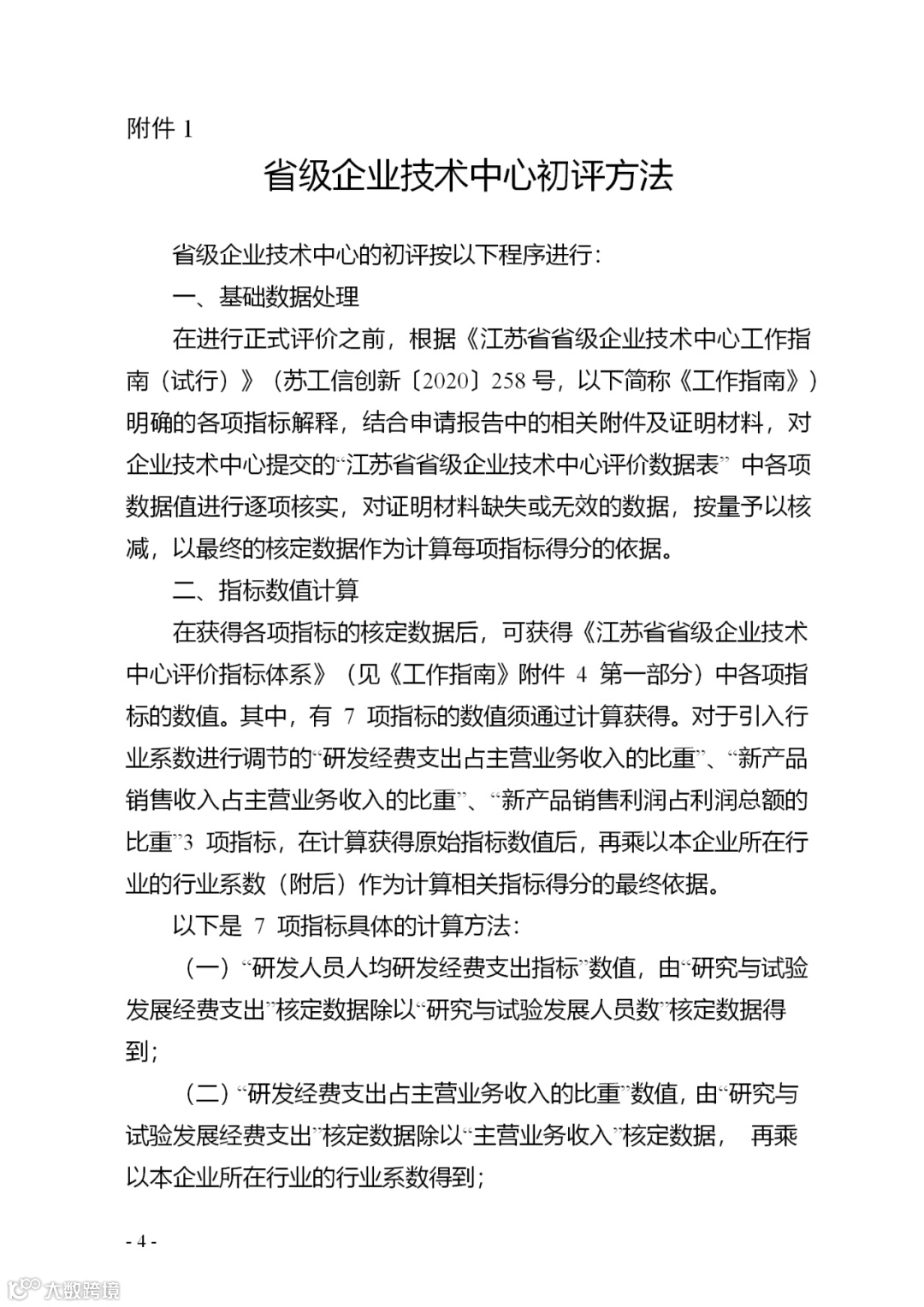 根据《江苏省省级企业技术中心认定管理办法》(苏工信规〔2020〕1号,以下简称《管理办法》)和《江苏省省级企业技术中心工作指南(试行)》(苏工信创新〔2020〕258号,以下简称《工作指南》)要求,现将2022年省级企业技术中心申报工作事项通知如下: