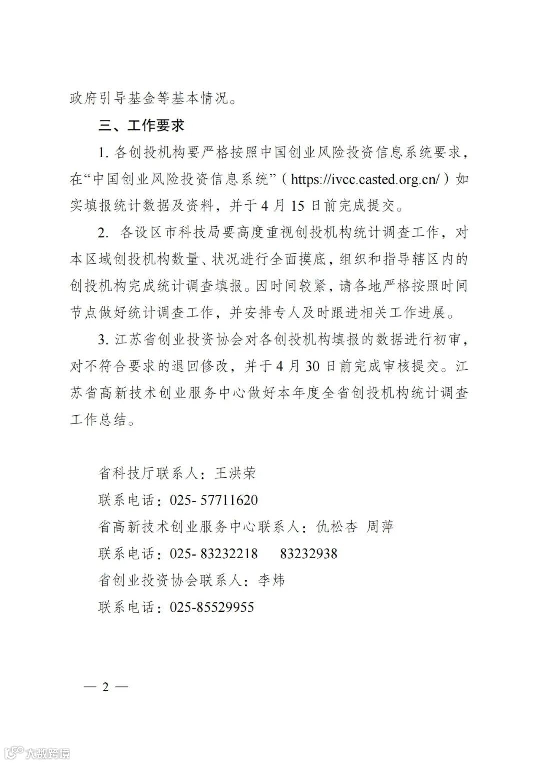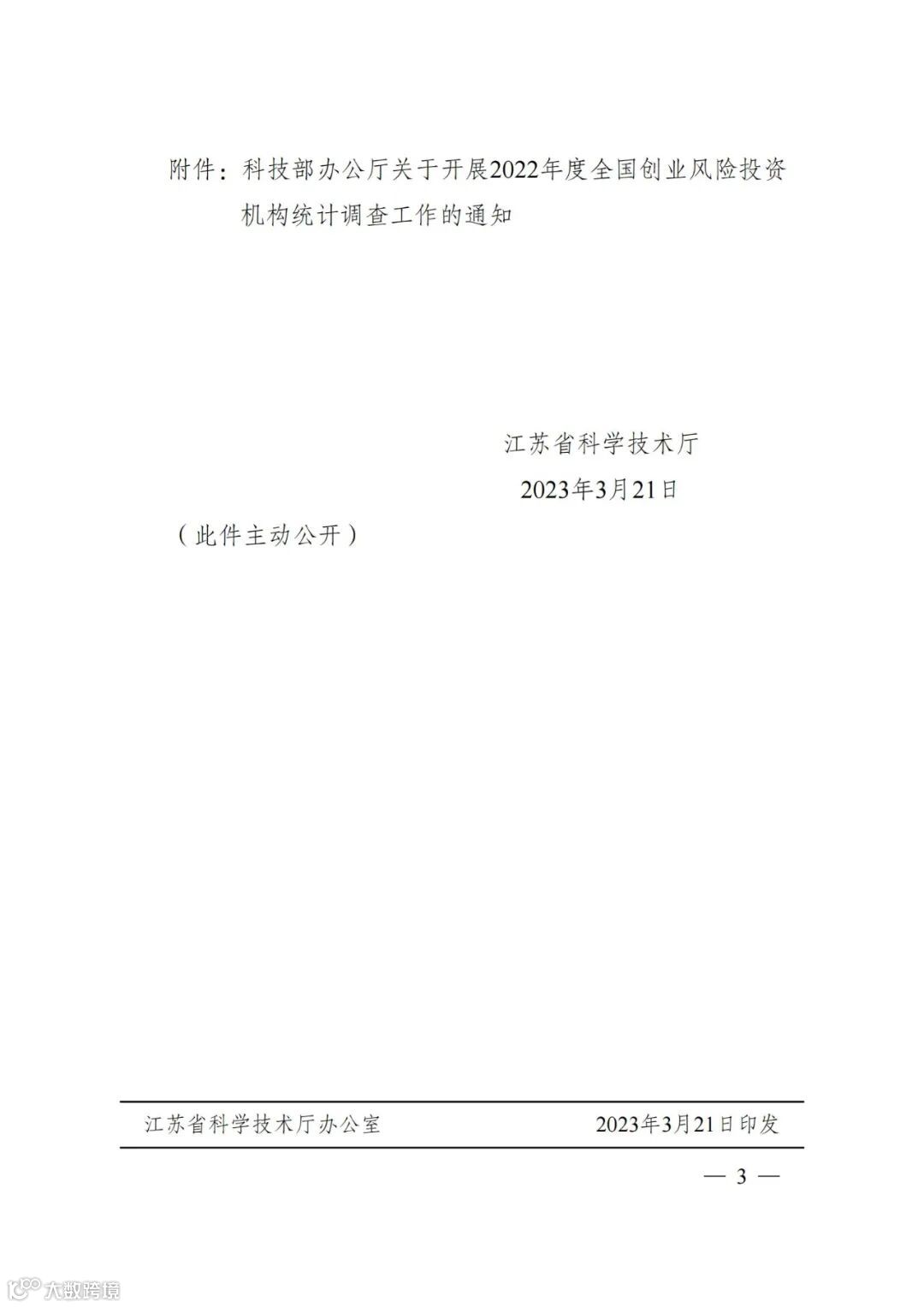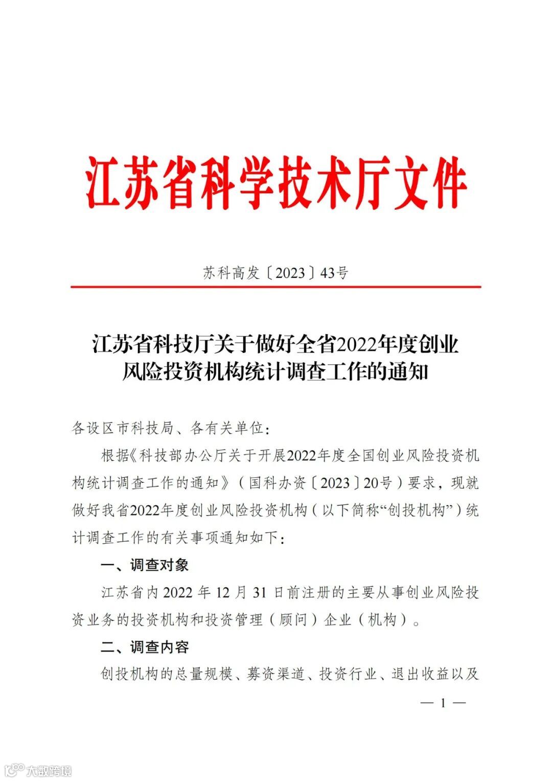 〖通知〗江苏省科技厅关于做好全省2022年度创业风险投资机构统计调查工作的通知