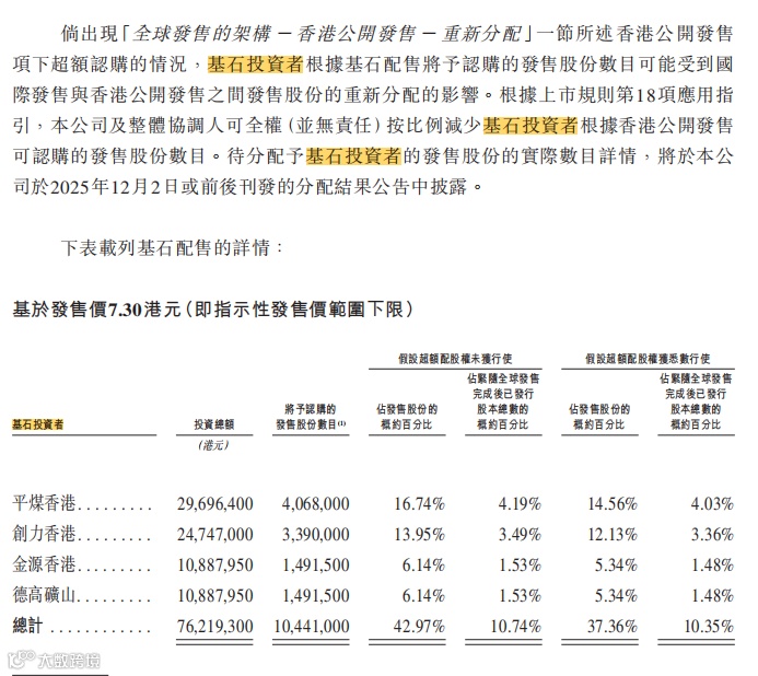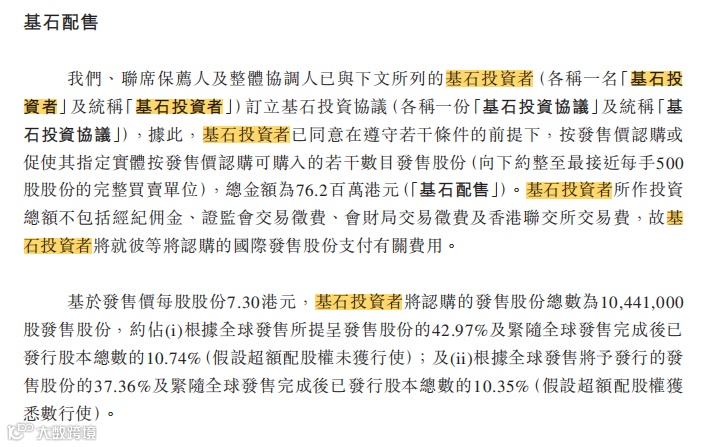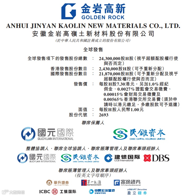 2、基石投资者和绿鞋机制双保险。金岩高嶺新材(02693.HK)将有基石投资者认购发行股票部分的42.97%份额,且有绿鞋机制兜底。