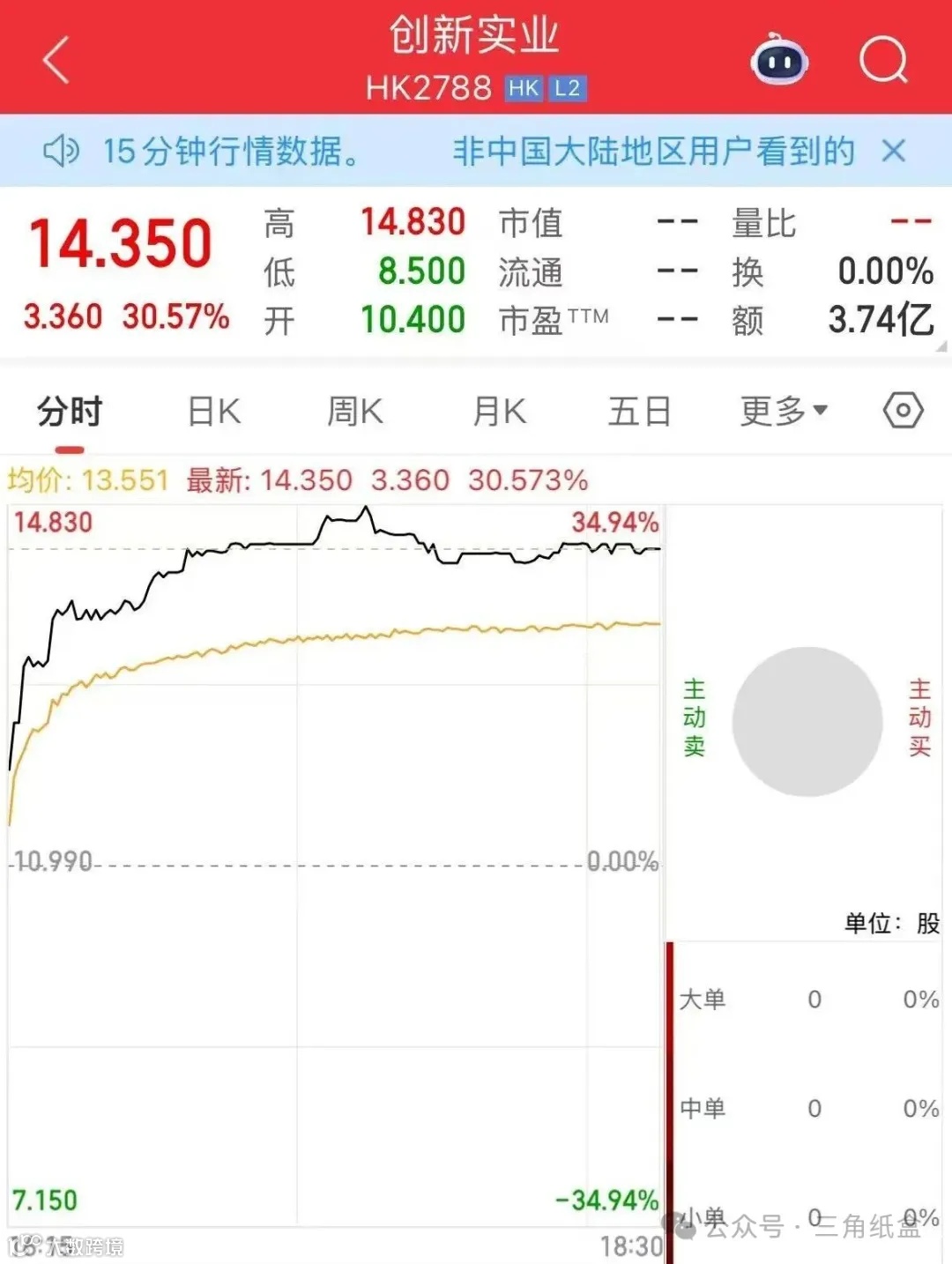 创新实业(02788.HK)上市首日大涨35%,已建议各位落袋为安。