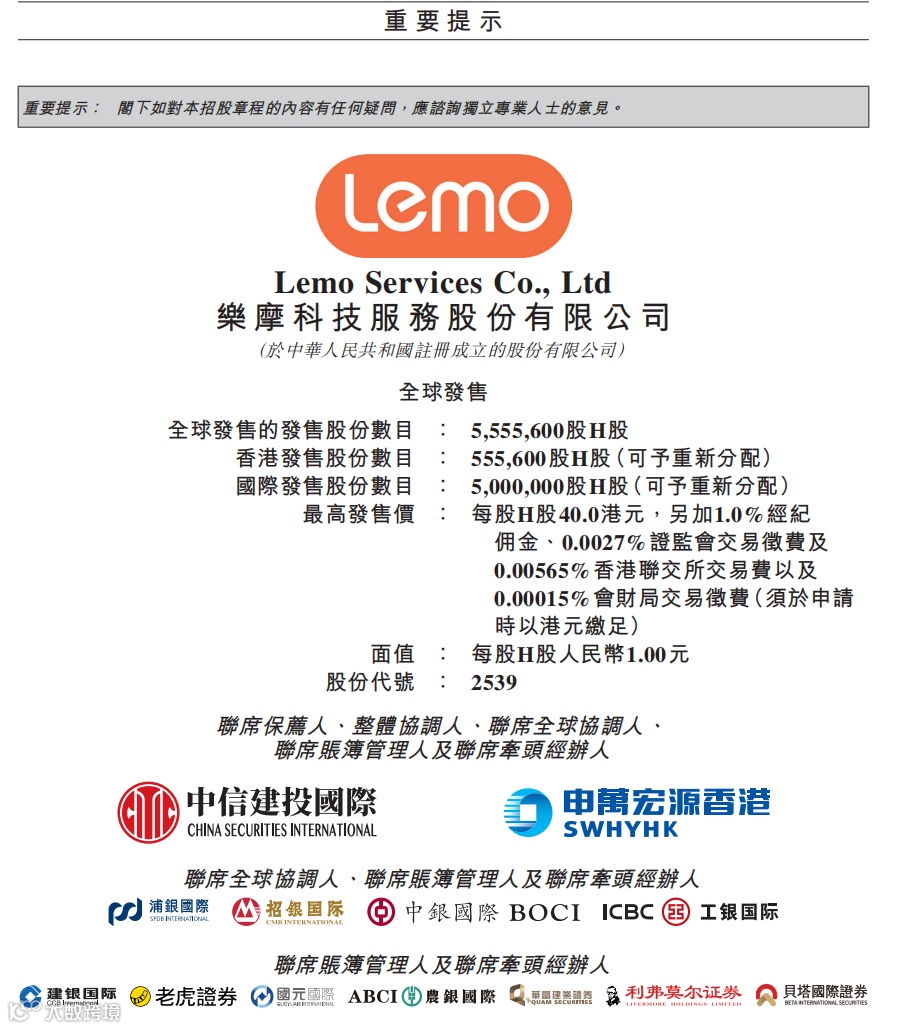 1、招股价格区间浮动太大。根据招股书,樂摩科技(02539.HK)招股价格在$27.00-40.00港元,上下将近50%,定价规则存疑。万一申购成功,定价$40港元,那不是白白买贵了50%?虽然定价在最区间的概率不高,但也不能