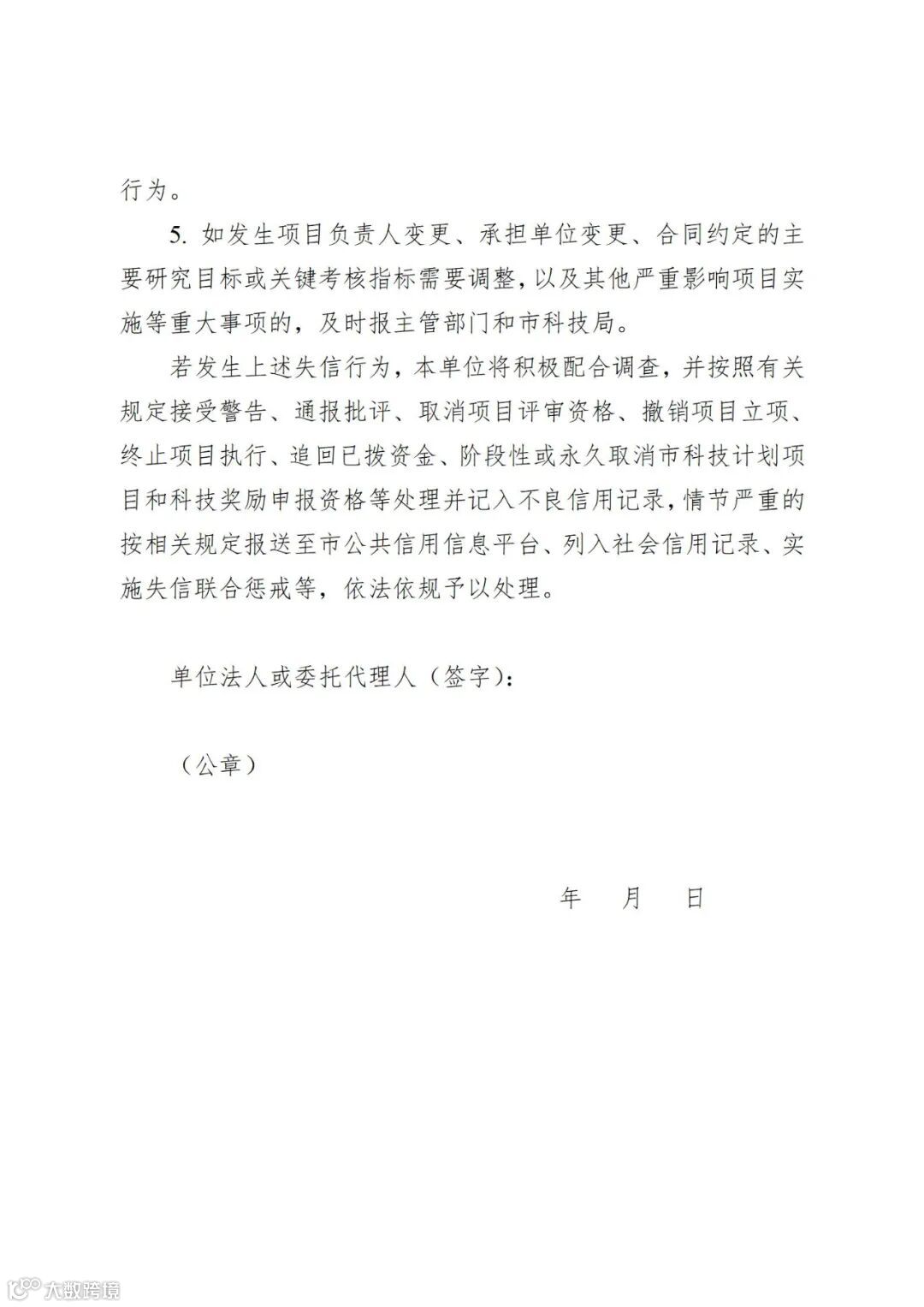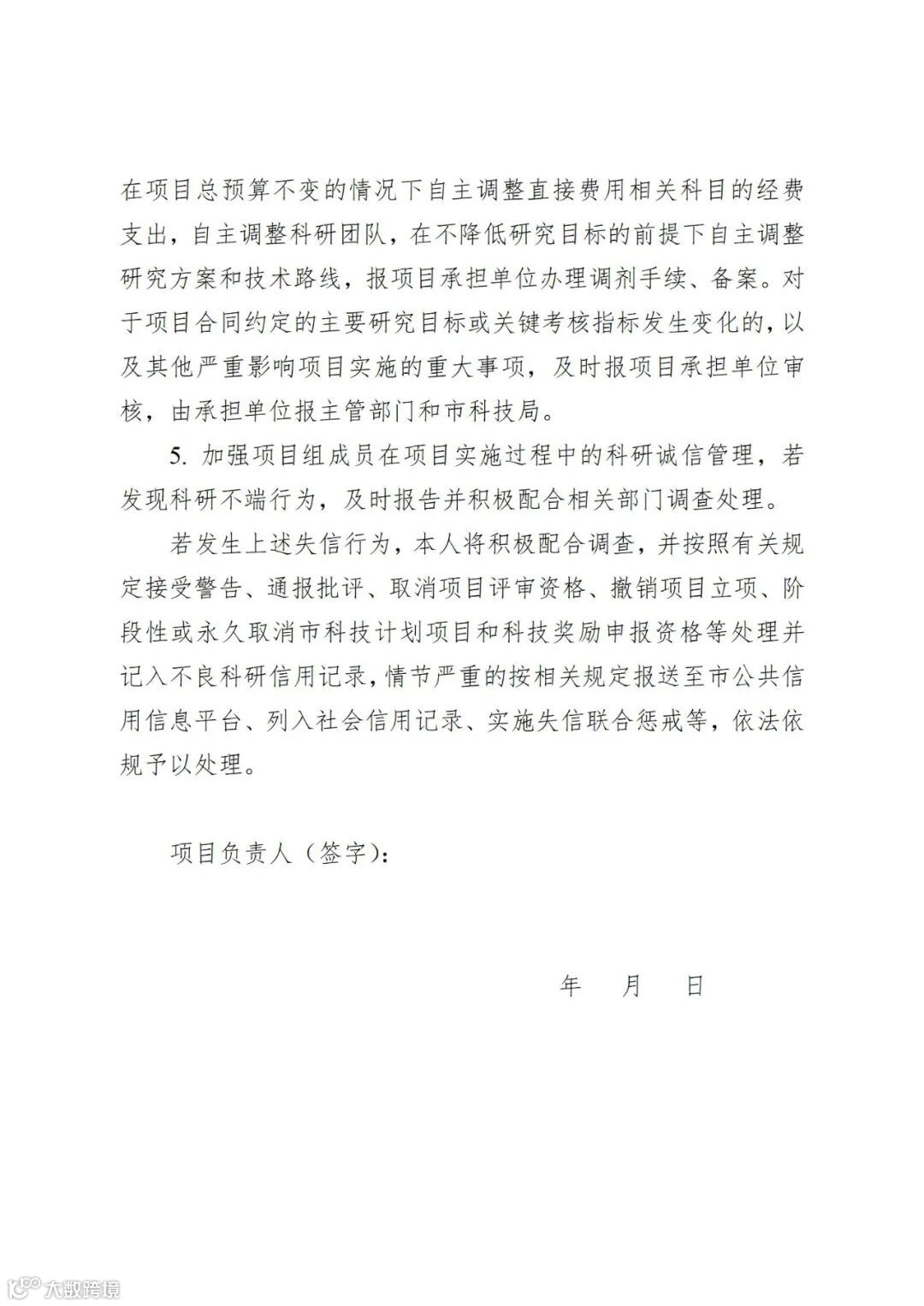 1.全面实施科研诚信承诺制。项目负责人和承担单位必须在项目申报时签署科研诚信承诺书,进一步明确各自承诺事项和违背相关承诺的责任。有不良信用记录的单位和个人,不得申报本年度市科技计划项目。