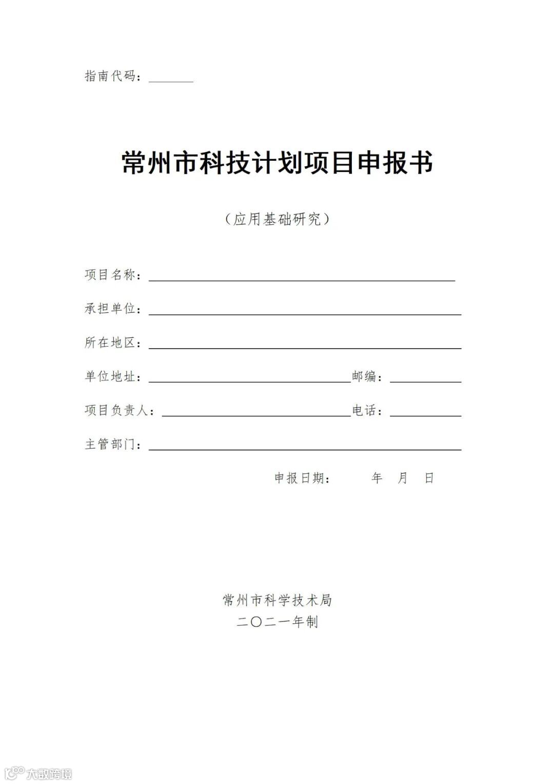 2. 2022年常州市第二批基础研究计划(应用基础研究)项目申报书