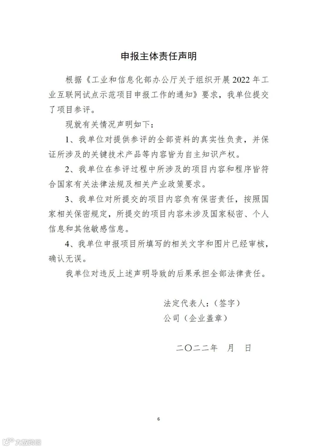 4.每个申报主体同一类型只能申报一个试点示范方向,同一申报主体最多不超过2个项目,同一项目不能重复申报。申报主体对单位资质、项目申报书(见附件3)内容的真实性负责,且必须提供项目相关视频证明材料(5~10分钟),否则视为无效申报材料。