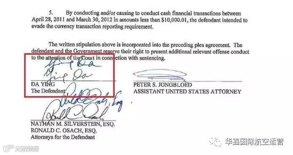 英达在联邦检察官办公室出具的认罪书上签字
