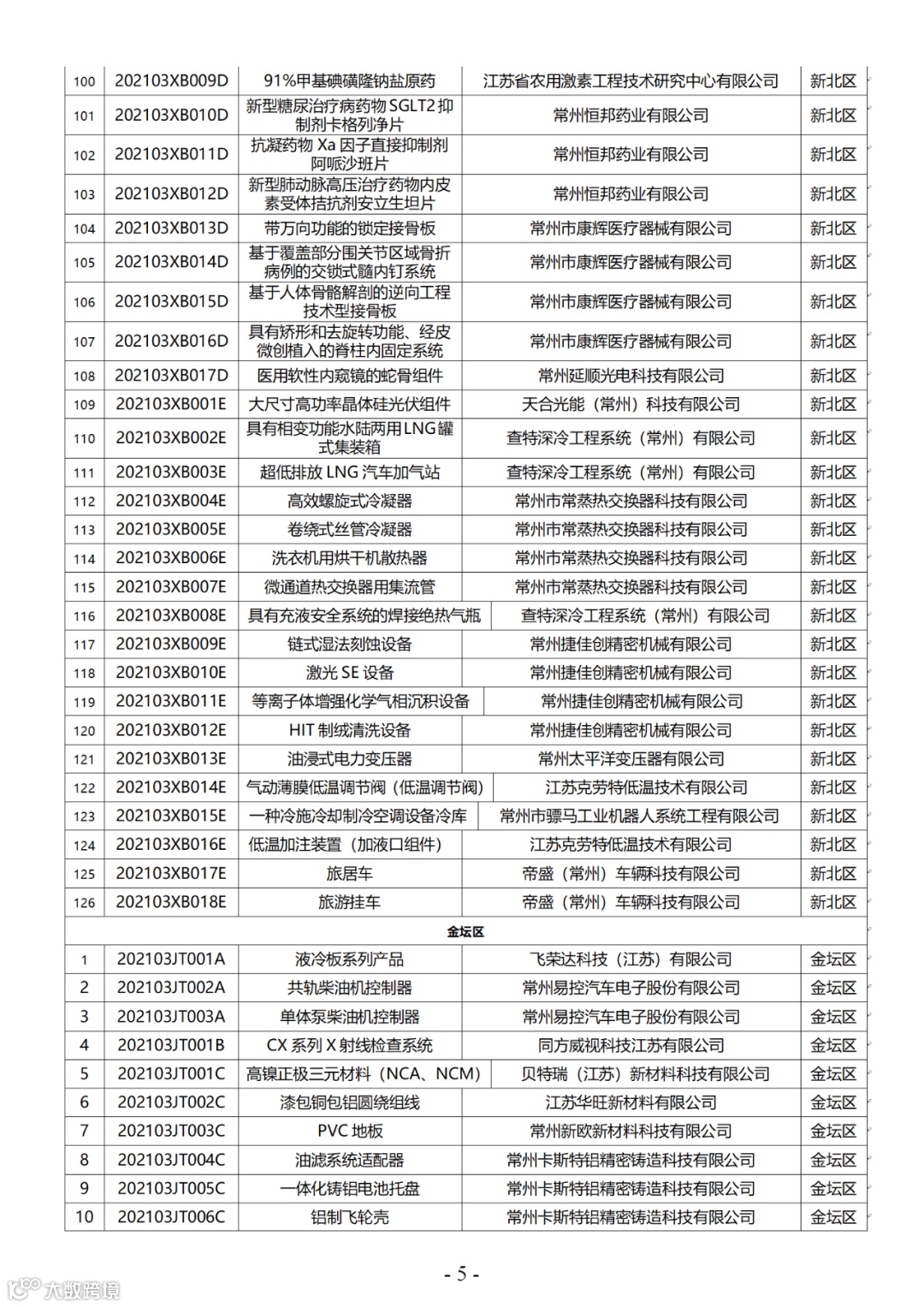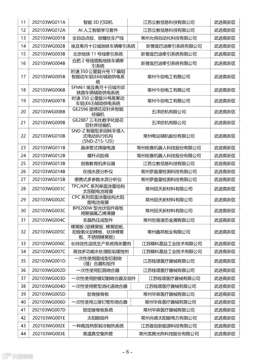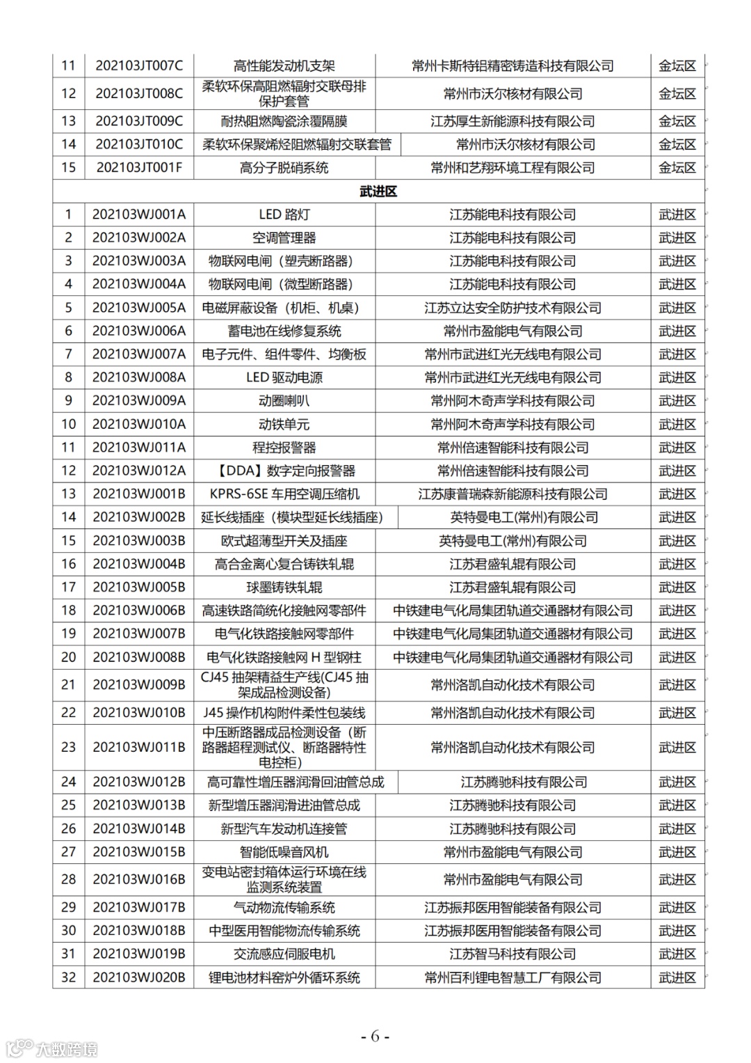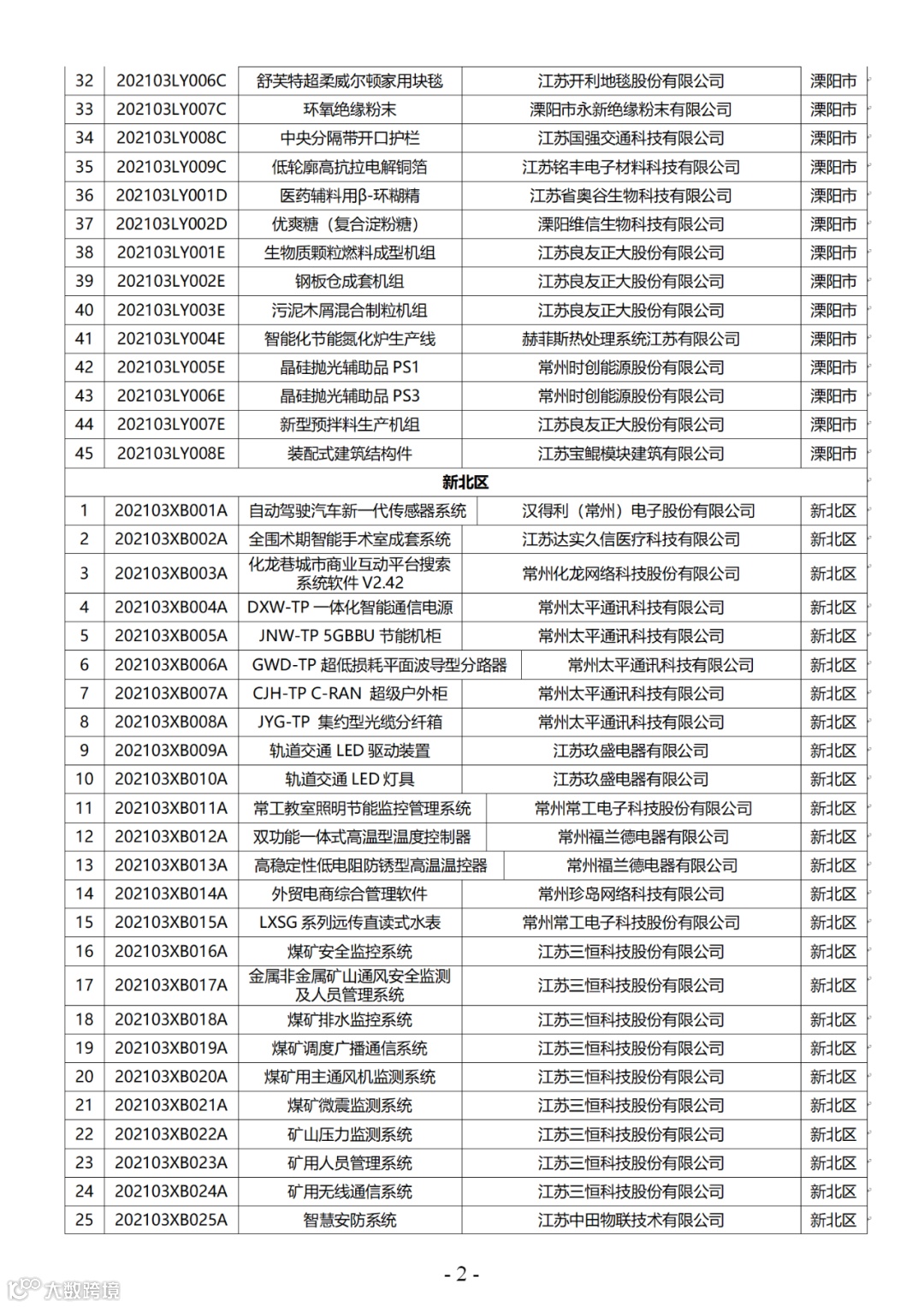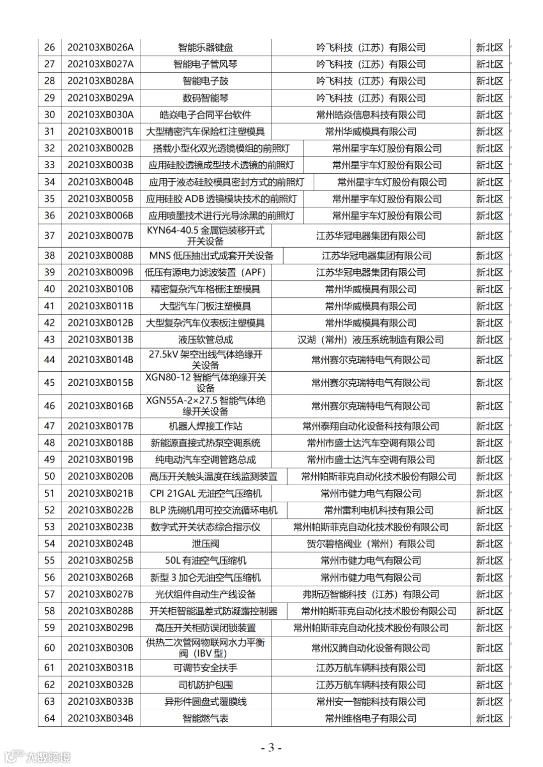 附件:2021年第三批常州市高新技术产品认定名单