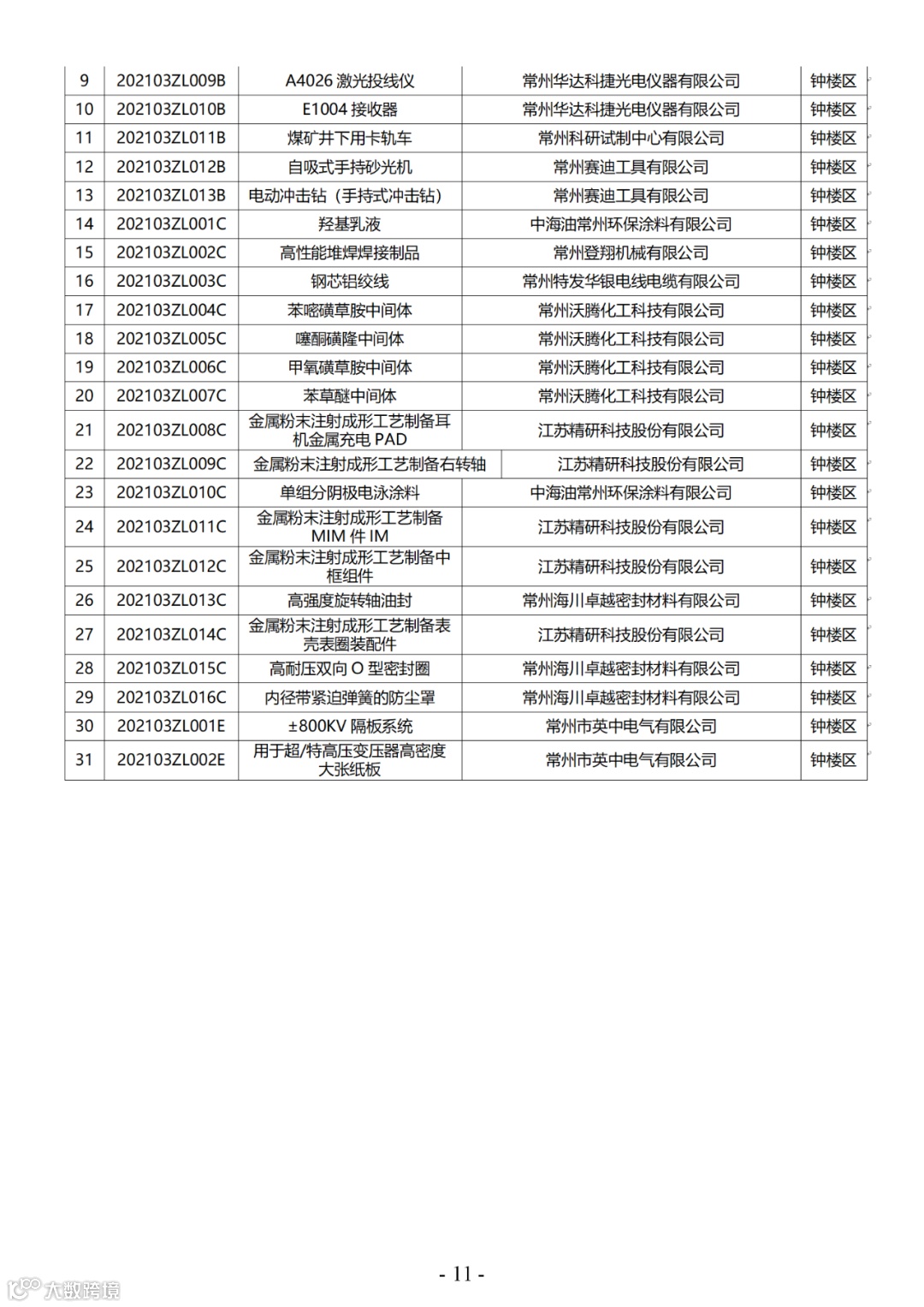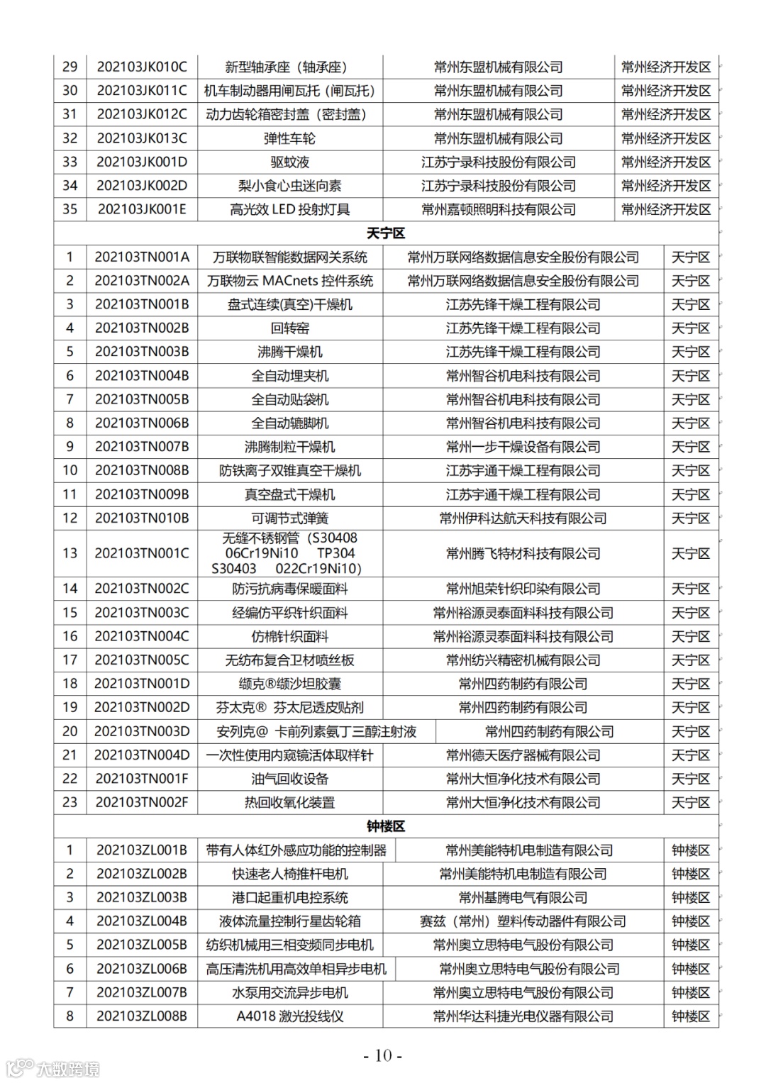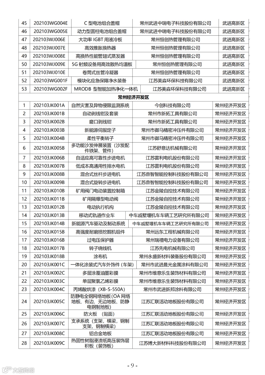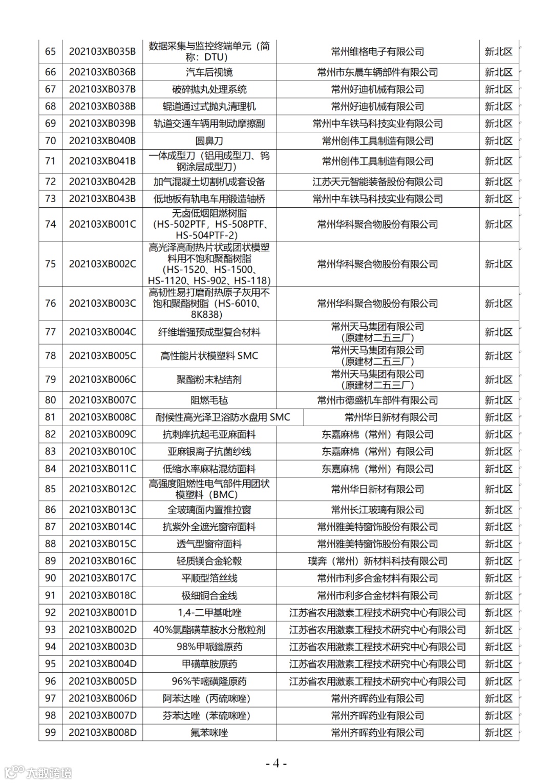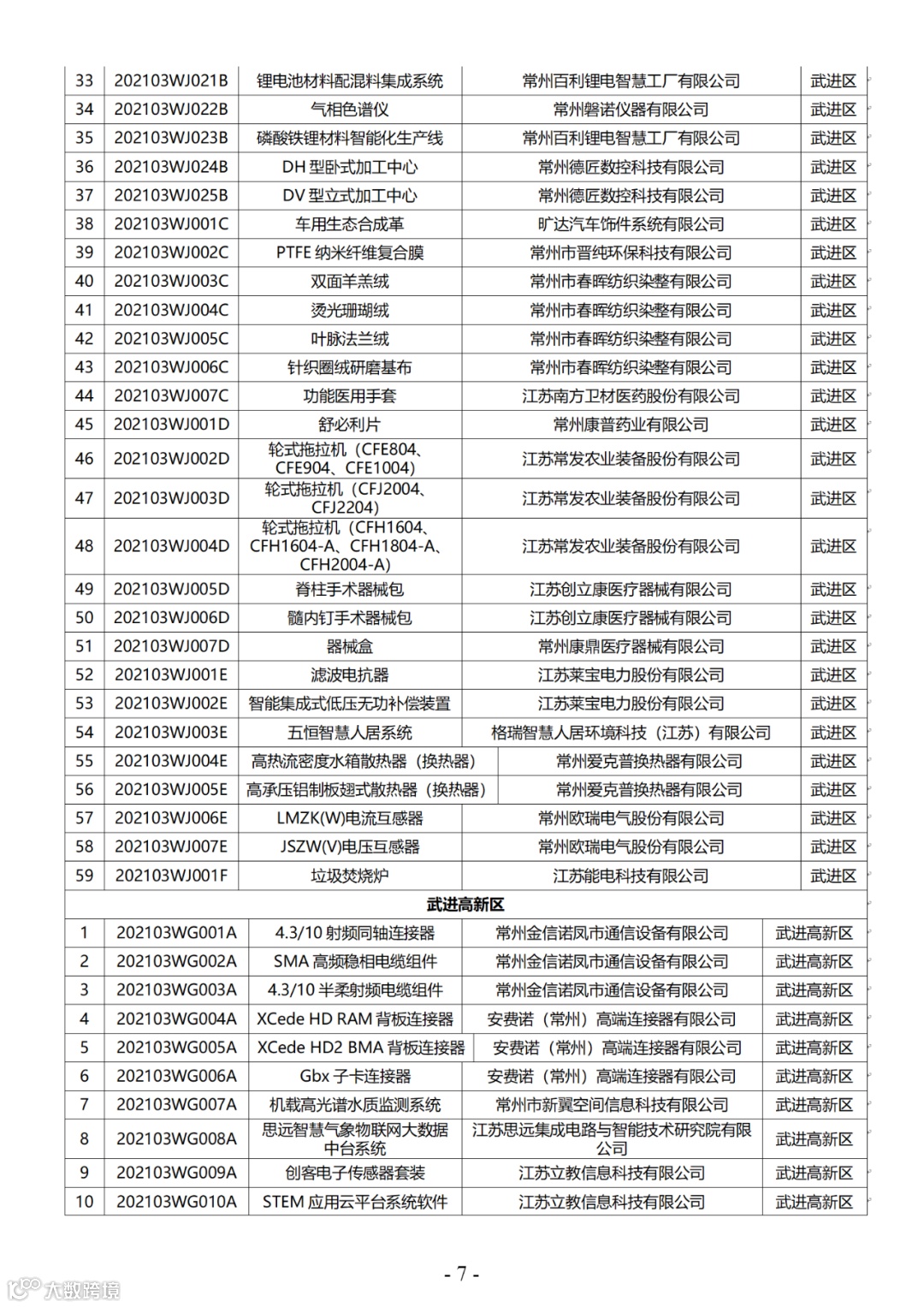 附件:2021年第三批常州市高新技术产品认定名单
