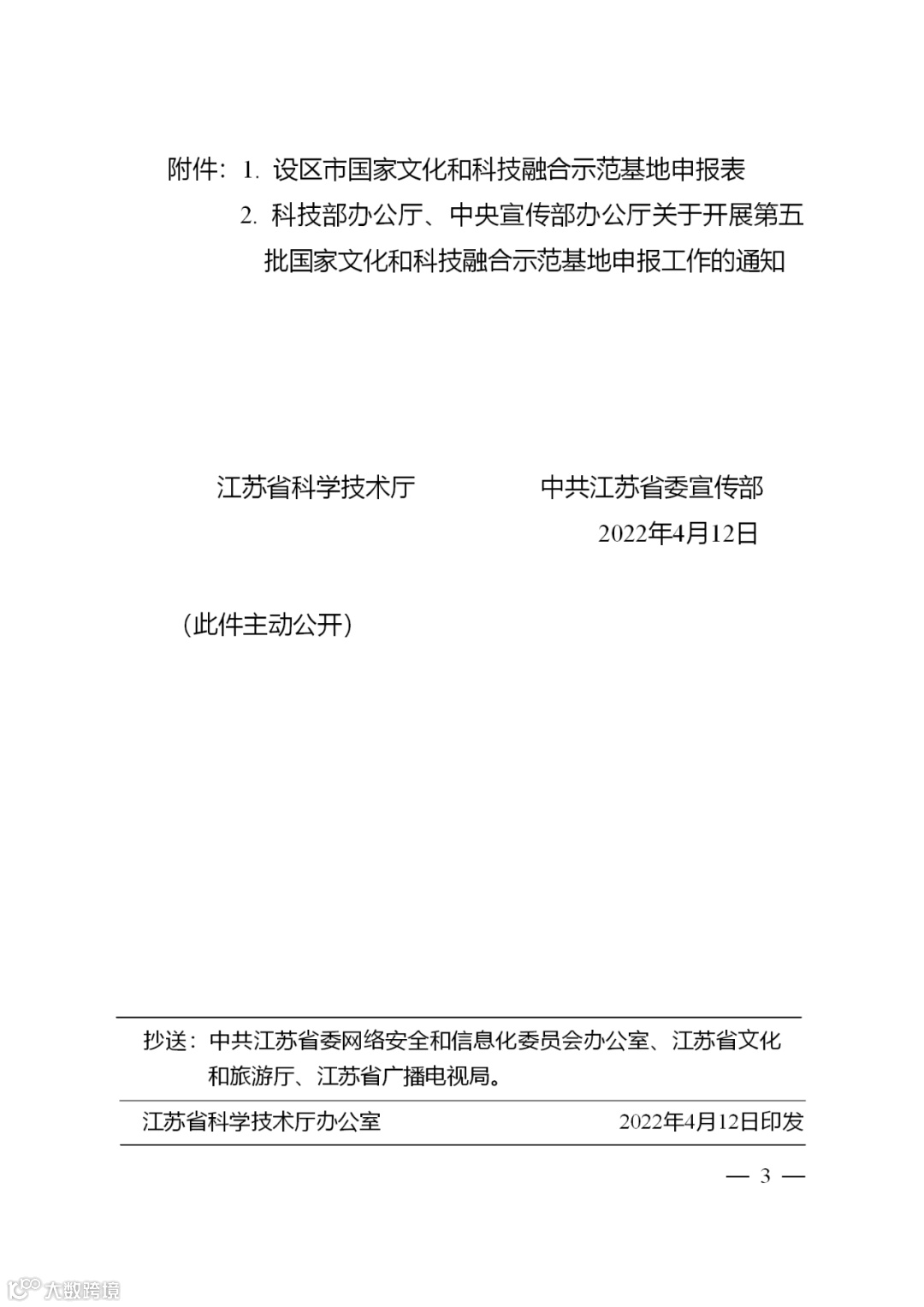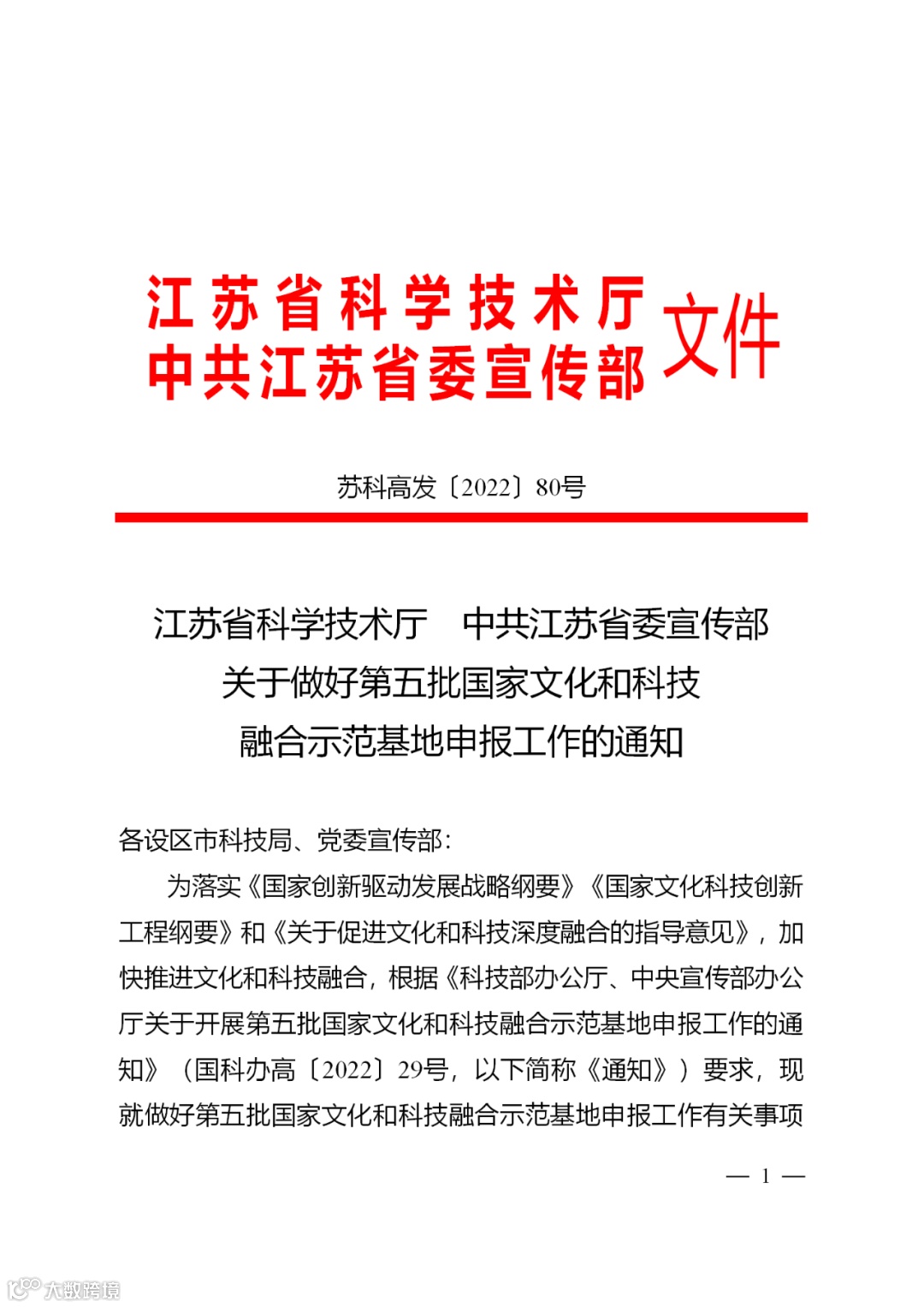 〖通知〗关于做好第五批国家文化和科技融合示范基地申报工作的通知