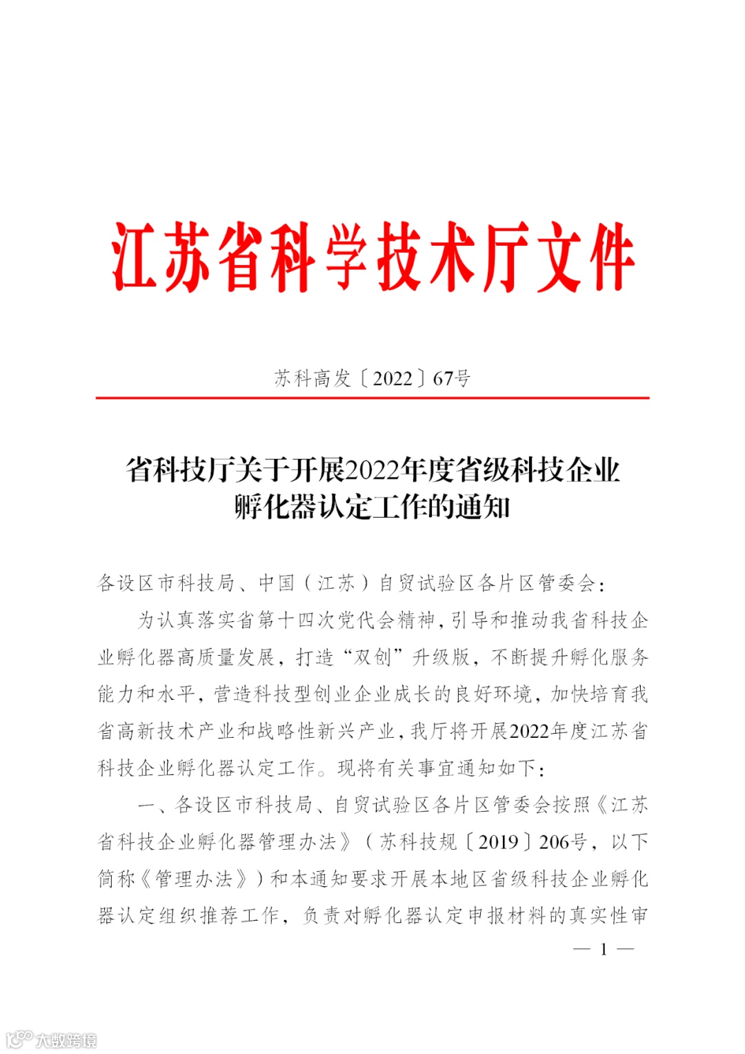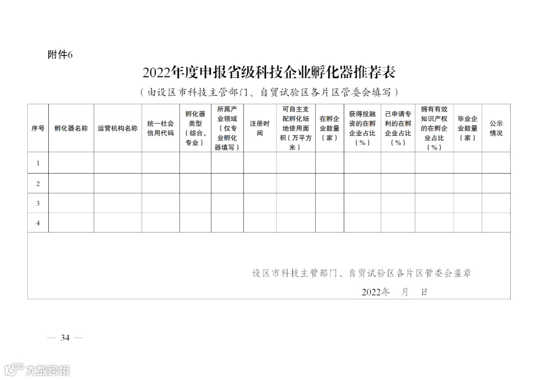 〖通知〗省科技厅关于开展2022年度省级科技企业孵化器认定工作的通知