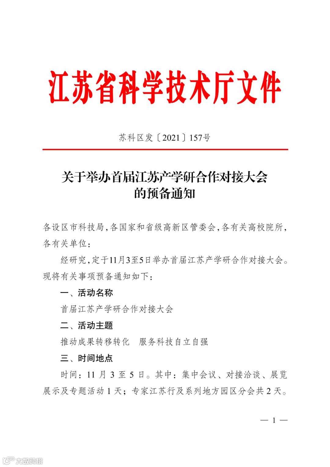 转!关于举办首届江苏产学研合作对接大会的预备通知
