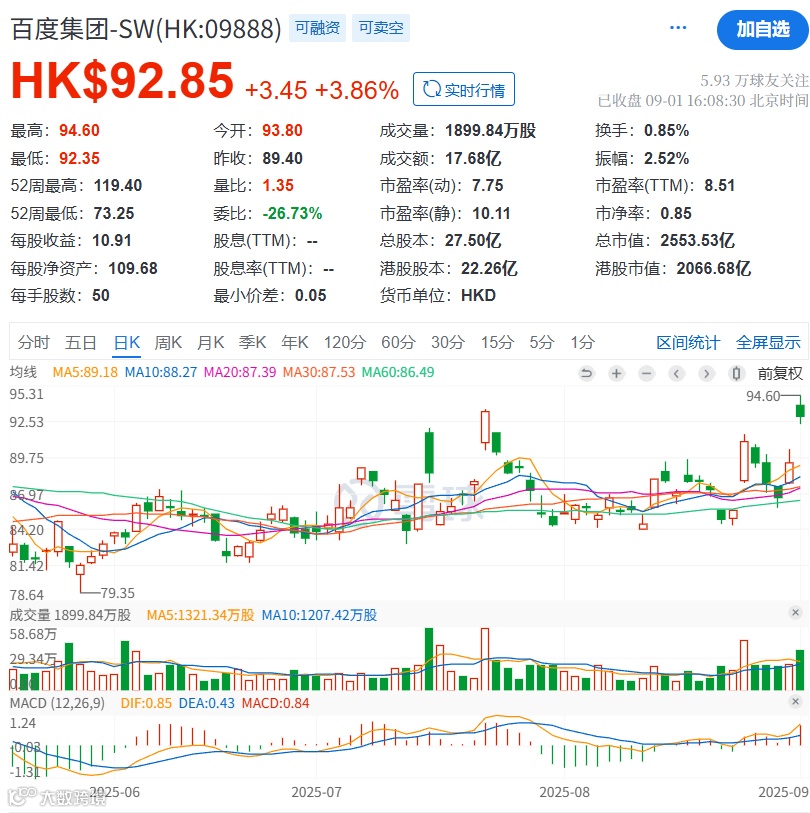近期,美国顶级风险投资人、Benchmark合伙人Bill Gurley公开表示,百度市值被严重低估。这一观点得到了市场响应,9月1日百度港股开盘大涨超5%。