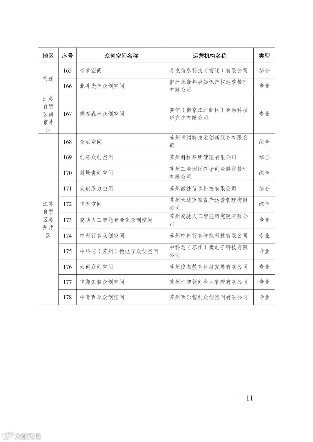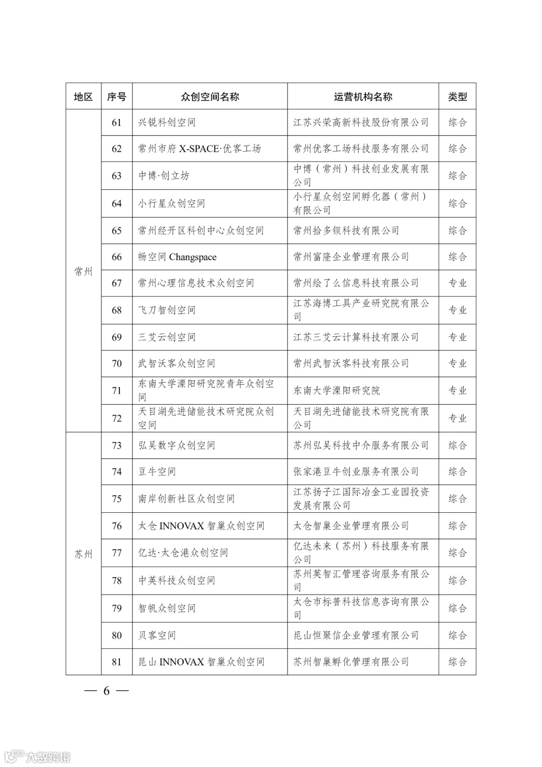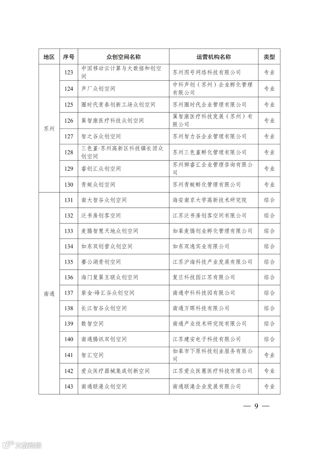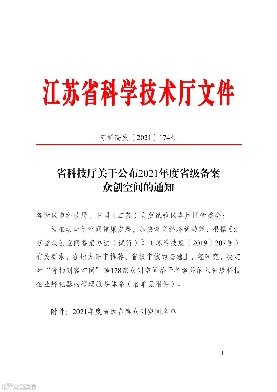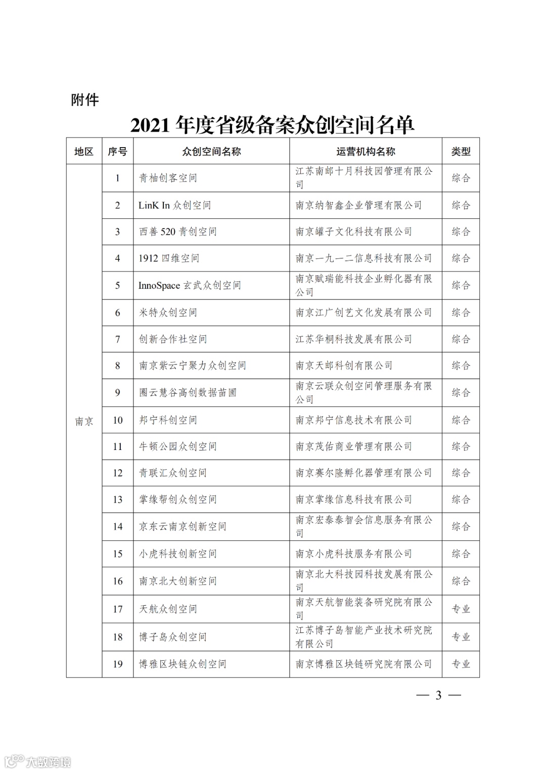 转!省科技厅关于公布2021年度省级备案众创空间的通知