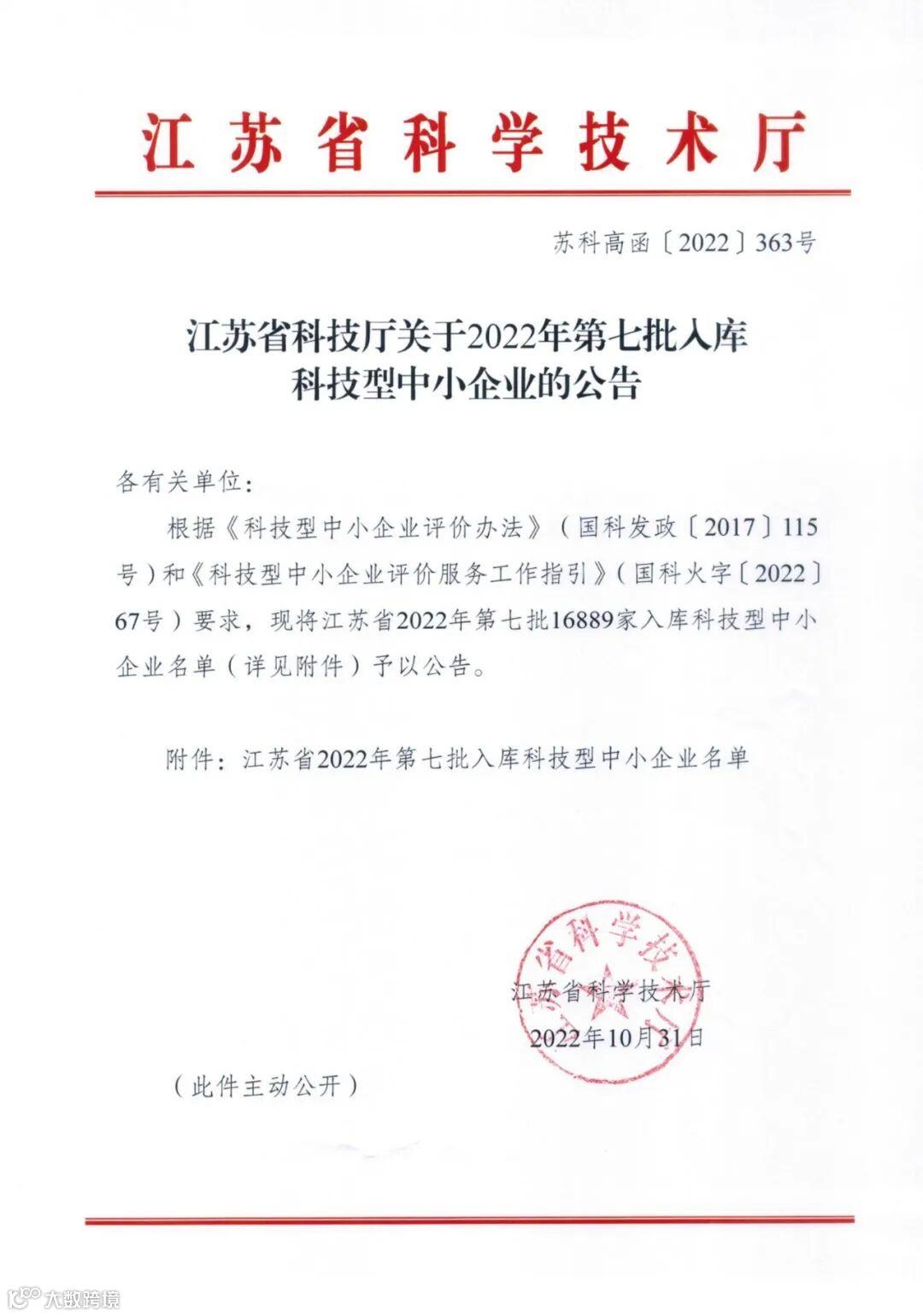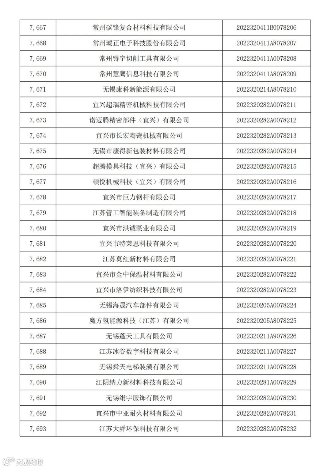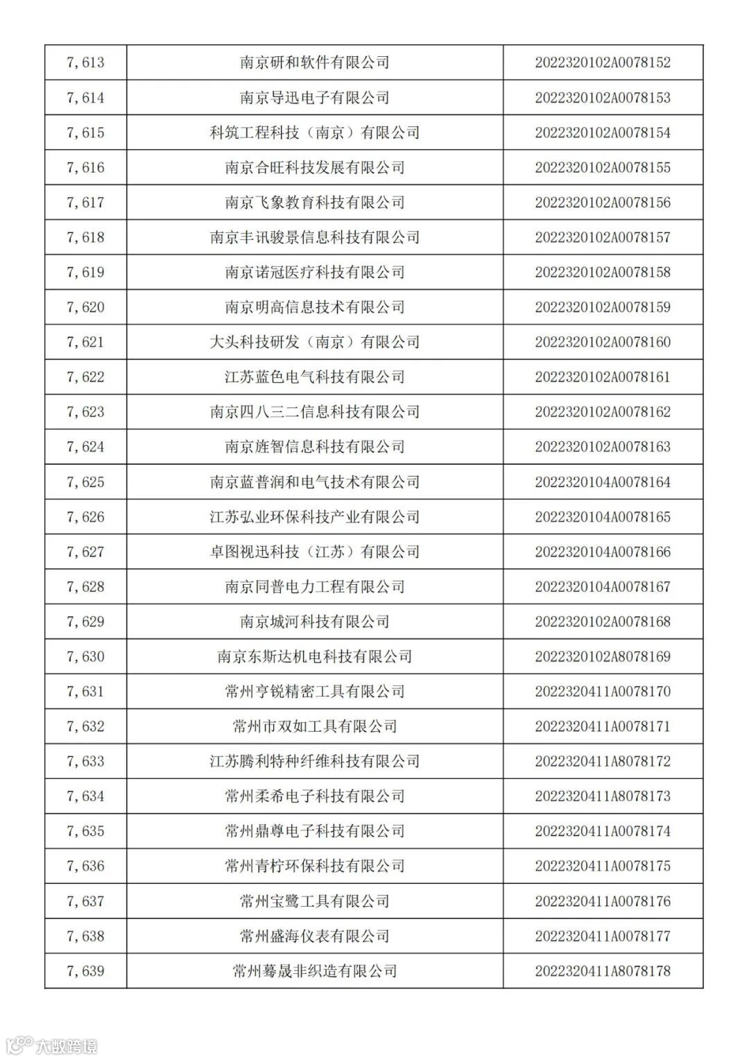 〖公示〗江苏省科技厅关于2022年第七批入库科技型中小企业的公告