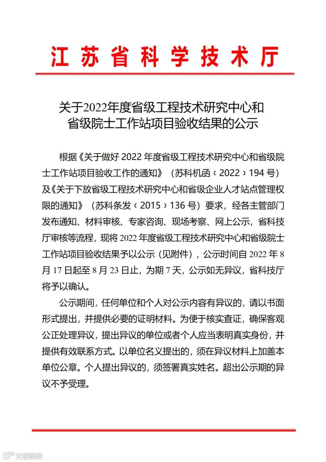 信息来源:江苏省科学技术厅