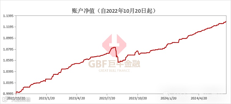 账户情况:当前总收益+12.93%,最大回撤 -2.45%;折合年化+7.40%;