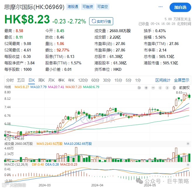 过去我们推荐的股票近期也逐渐复盘,盈利尚可,今天复盘的这只是2月份进场的思摩尔国际,进场价格5.2附近,今天出掉一部分,按照今天下跌之后的收盘价8.23,盈利仍然超过50%。