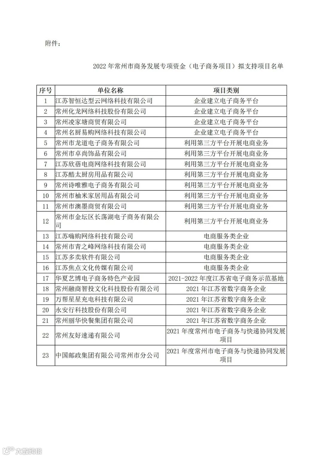 附件:2022年常州市商务发展专项资金(电子商务项目)拟支持项目名单公示.doc