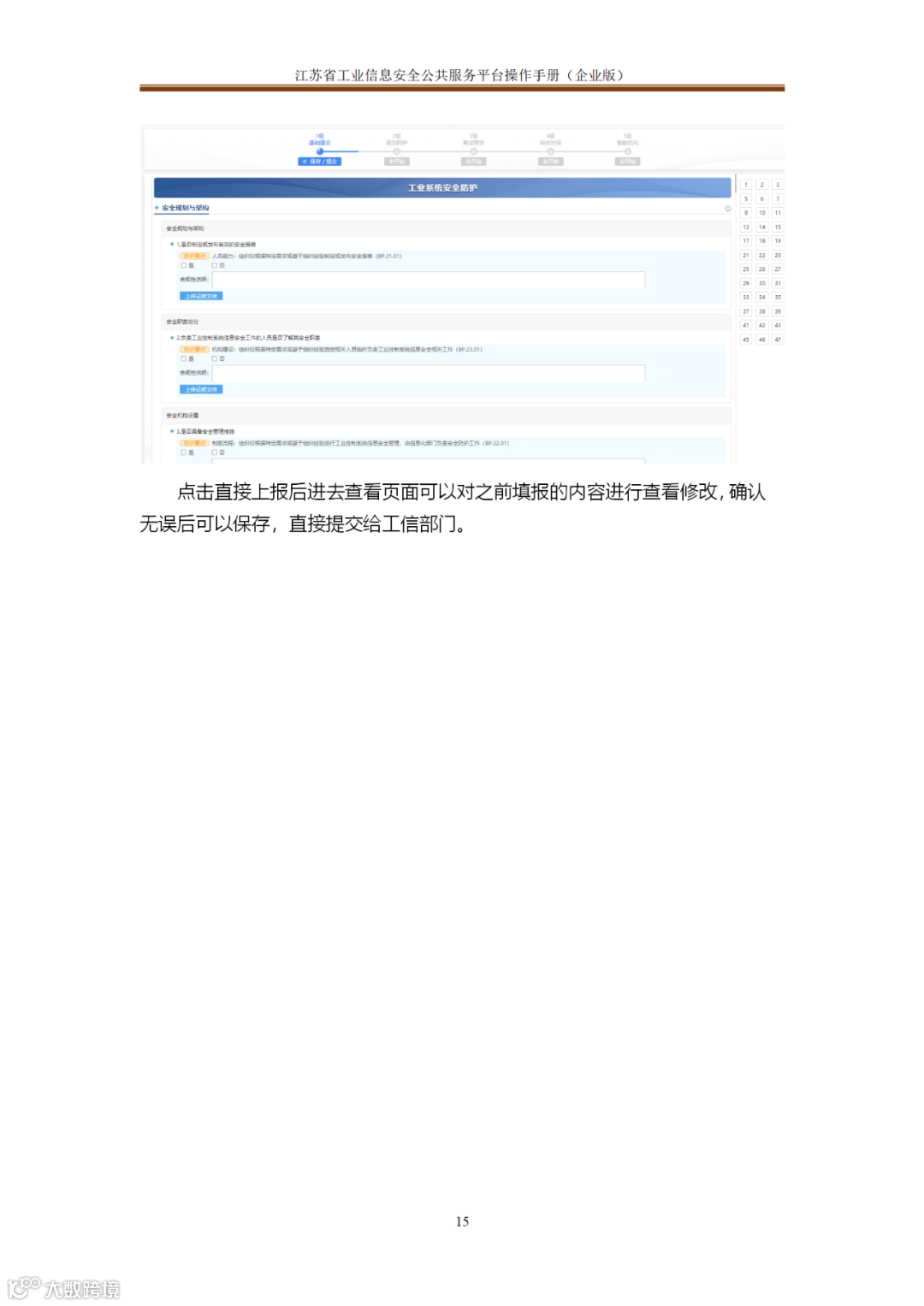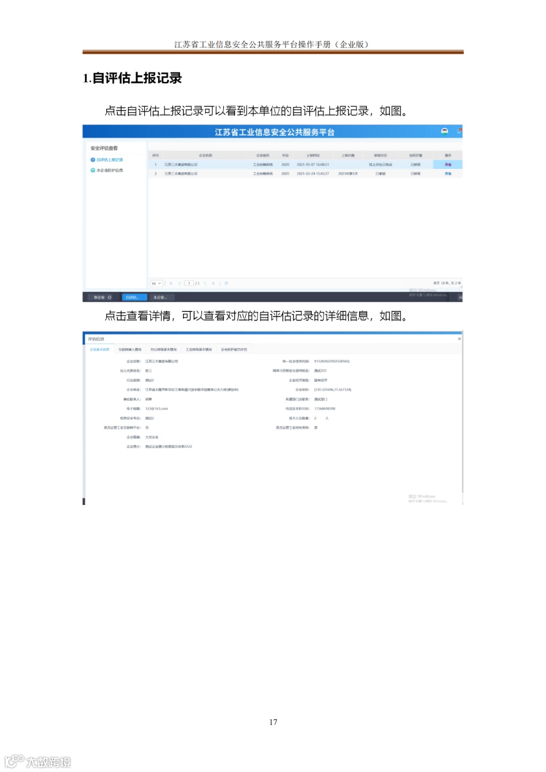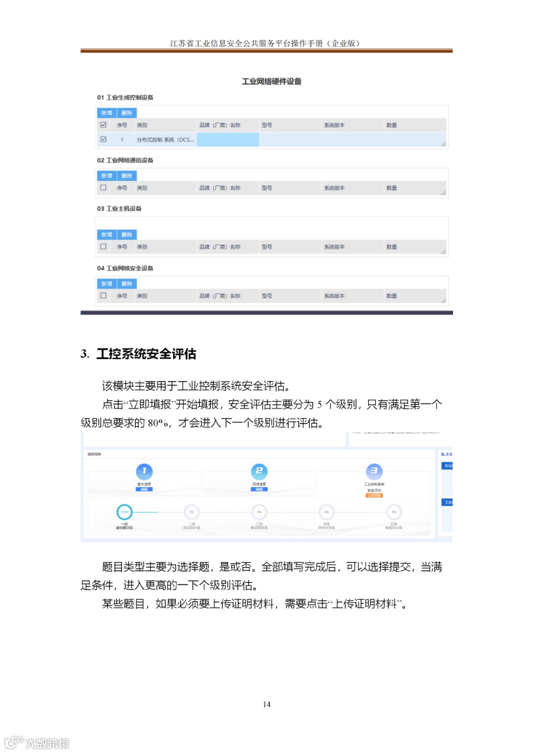 (二)企业自评估阶段。各设区市工信局组织企业在“江苏省工业信息安全公共服务平台”