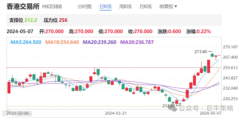 由于港股近期的持续走强,香港交易所也迎来了一波强势行情。在年初我们考虑到春节前A股的下跌行情以及港股的低估值情况,我们认为香港将会是内地资本向外投资的第一站故看好港交所的未来走势。然而,同样的,香港同样是海外资金进入中国的第一站,这一波外资对中国市场的热情也点燃了港股的行情。