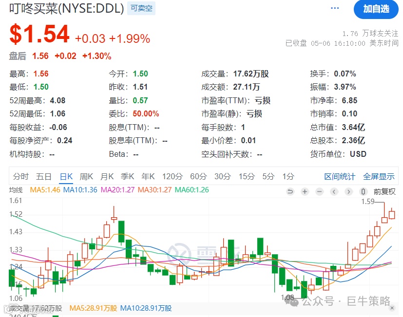 我们在3月6号认为由于业绩支撑,叮咚买菜在美股迎来漫长下跌后的反弹行情,虽然在短暂反弹后有所震荡调整,但在近期也成功打开上升通道,迎来一波较强的走势。