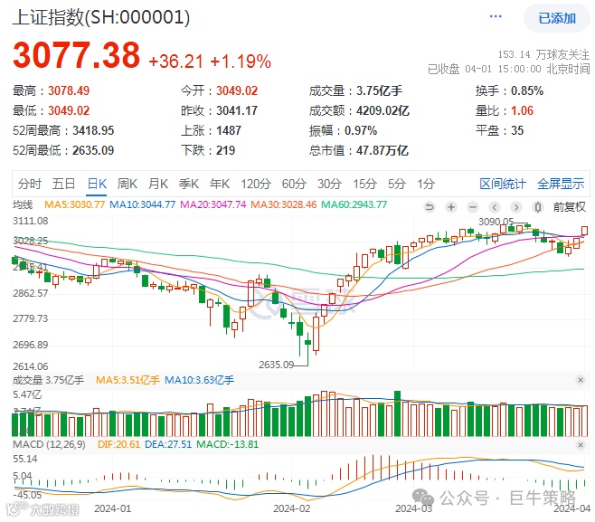 香港复活节休市,今天没有北向资金,全是国内资金在买。能扛过明天,这一波比预期时间更长、价格幅度比预期更窄的调整,终于要结束了。