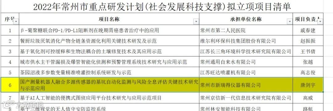祝贺我司辅导企业“常州市新瑞得仪器有限公司”获得2022年常州市重点研发计划立项项目公示。