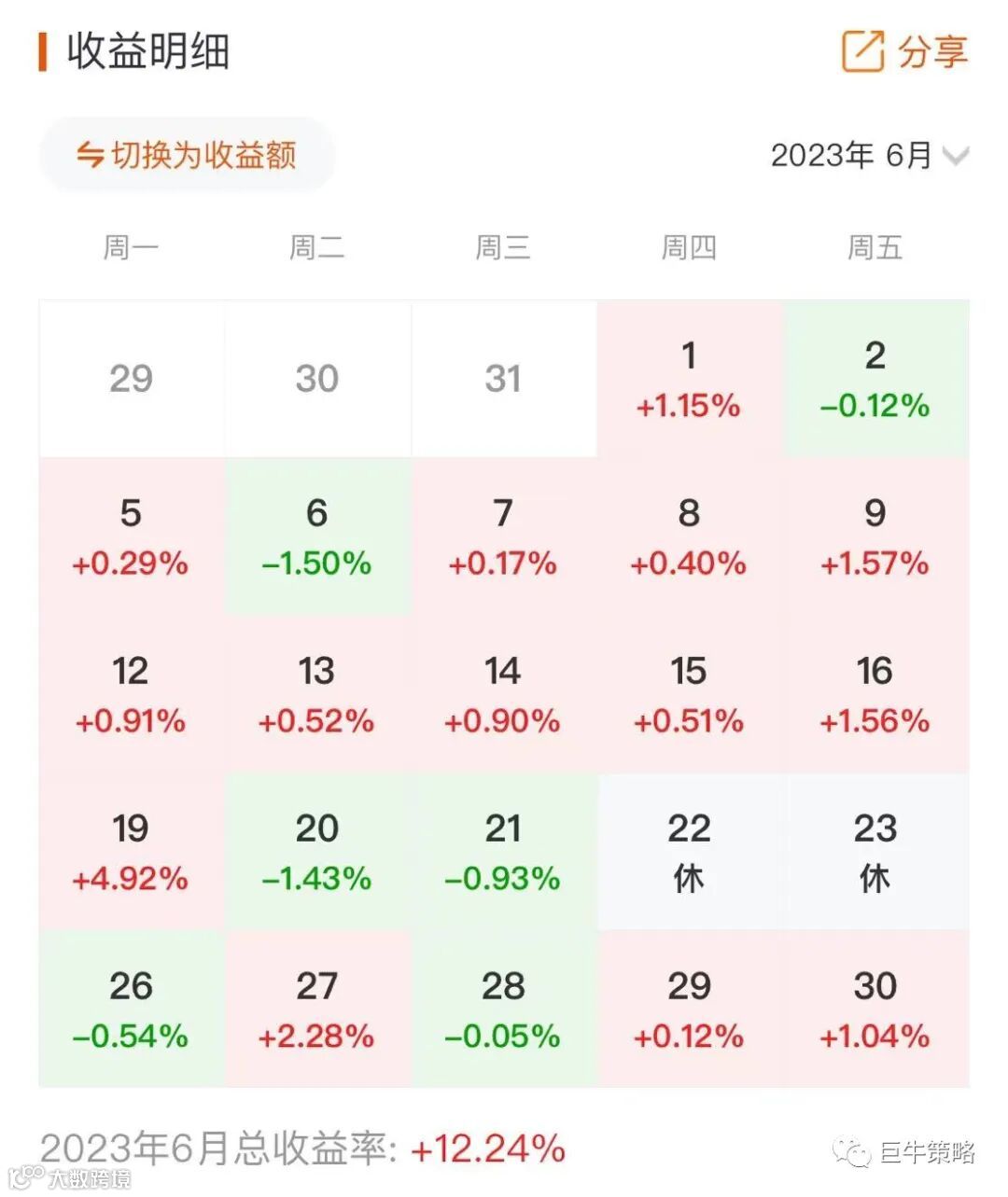 这个月最后一天统计本月盈利+12.24%。