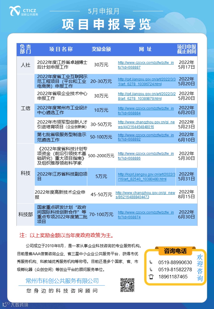 导读:“一站式”创新创业资源公共服务平台信息来源:常州市科创公共服务有限公司发布时间:2022-5-13点击“阅读