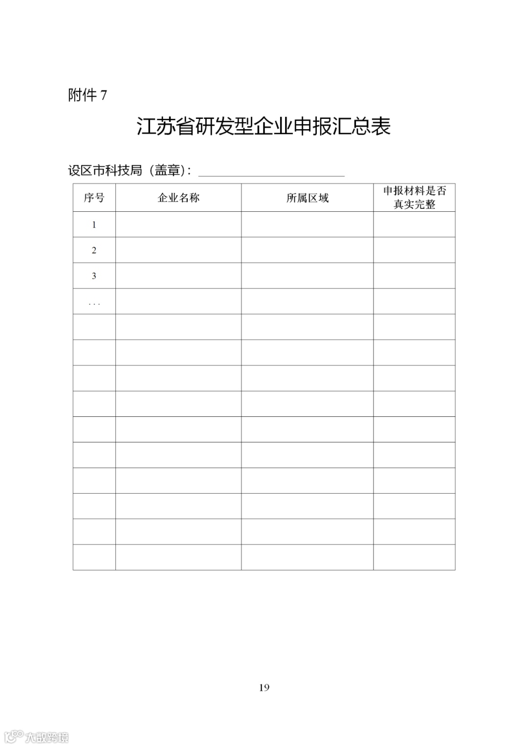2.各设区市科技主管部门推荐符合条件的企业,填写《江苏省研发型企业申报汇总表》(以下简称“汇总表”)(附件7),并加盖单位公章,连同企业申报材料,统一报送至江苏省产业技术研究院(地址:南京市江北新区产业技术研创园华富路7号),其中,汇总表一式两份,企业申报材料一式四份。电子版材料同时发送至邮箱jsyf@jitri.cn。