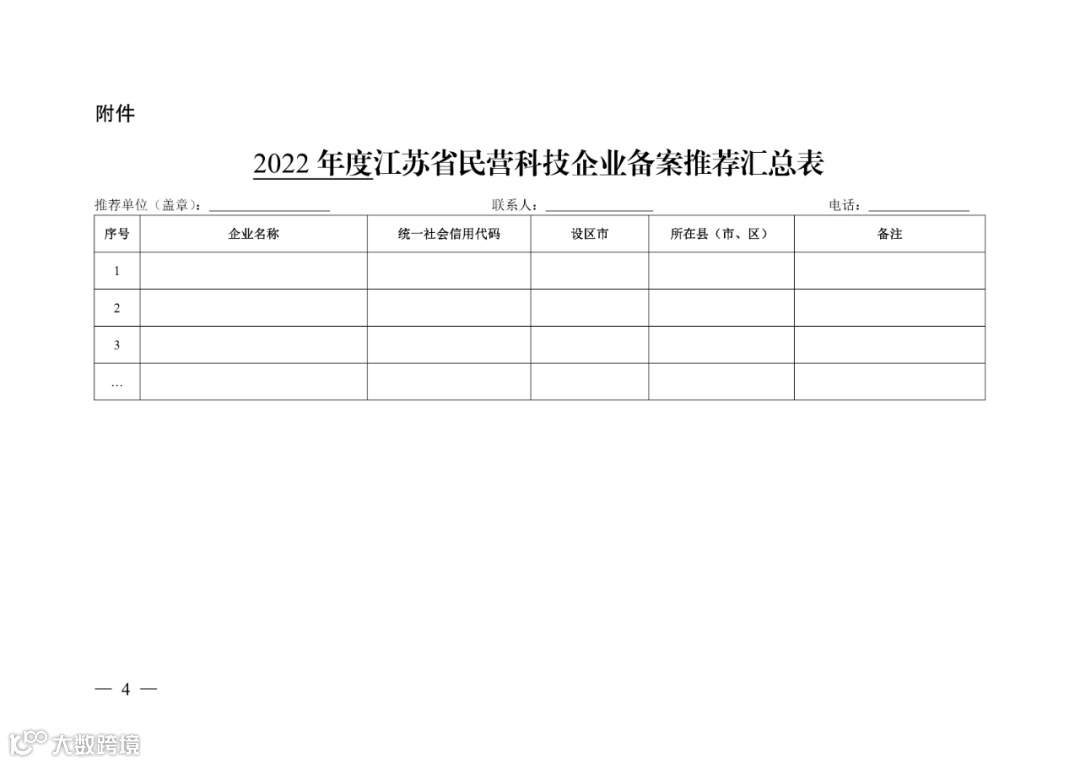为贯彻落实省委省政府《关于印发江苏省优化营商环境行动计划的通知》(苏发〔2022〕9号),加强对民营科技企业的精准支持和服务,按照省民营科技企业协会《关于组织开展2022年度江苏省民营科技企业备案工作的通知》(苏民科协〔2022〕1号)要求,决定组织开展我市2022年江苏省民营科技企业备案工作。有关事项通知如下: