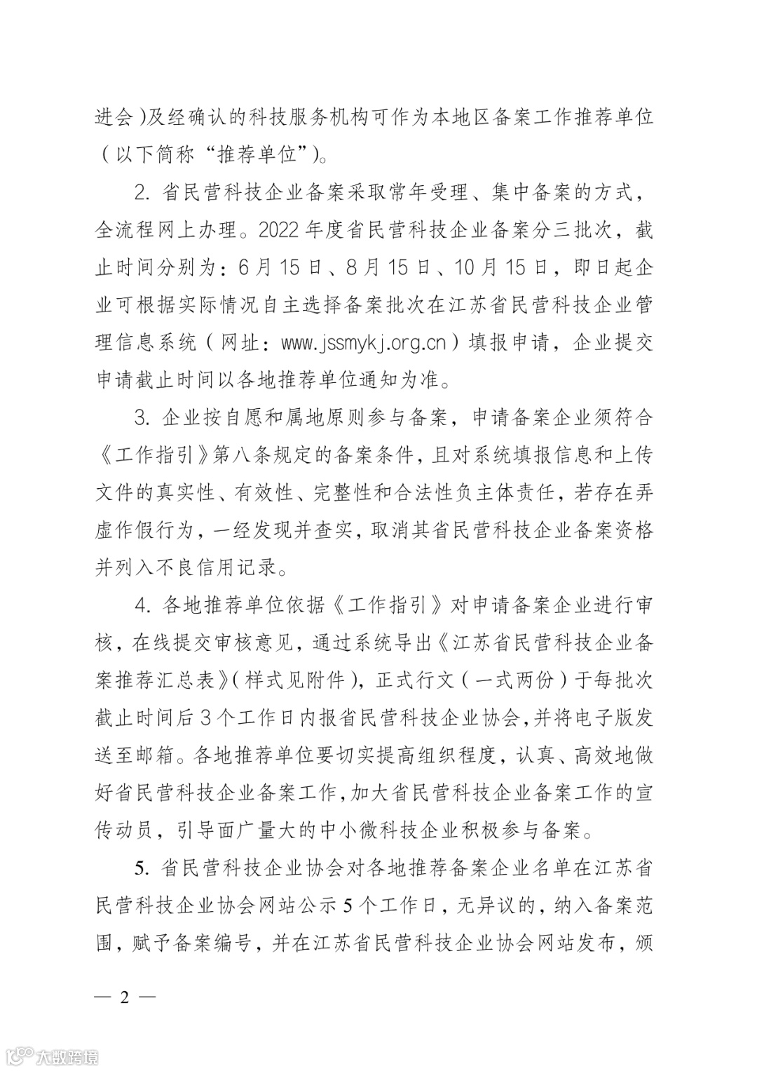 2.江苏省民营科技企业备案有效期为3年,实行动态管理。