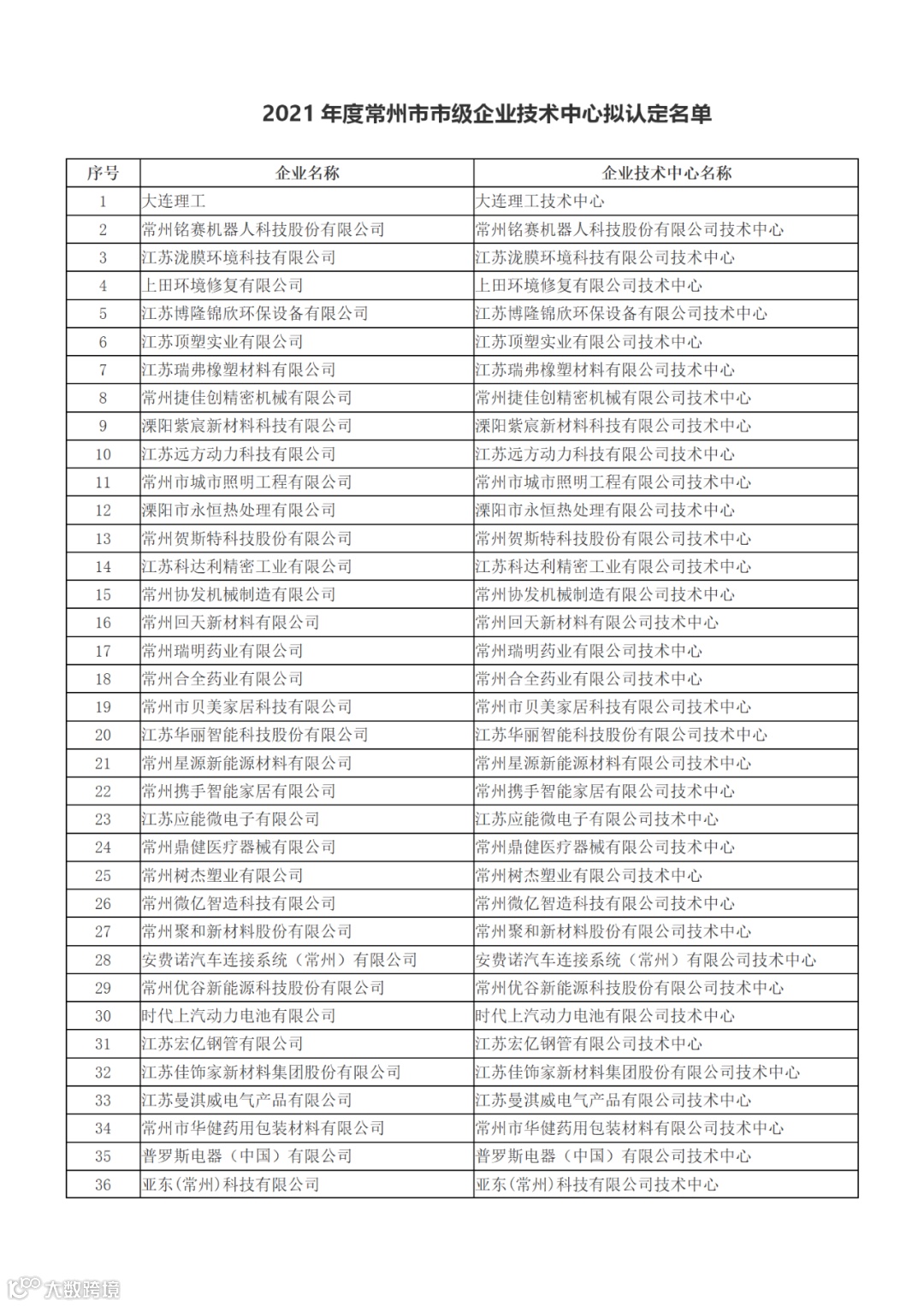 〖喜报〗祝贺我司辅导企业通过2021年度常州市市级企业技术中心名单公示